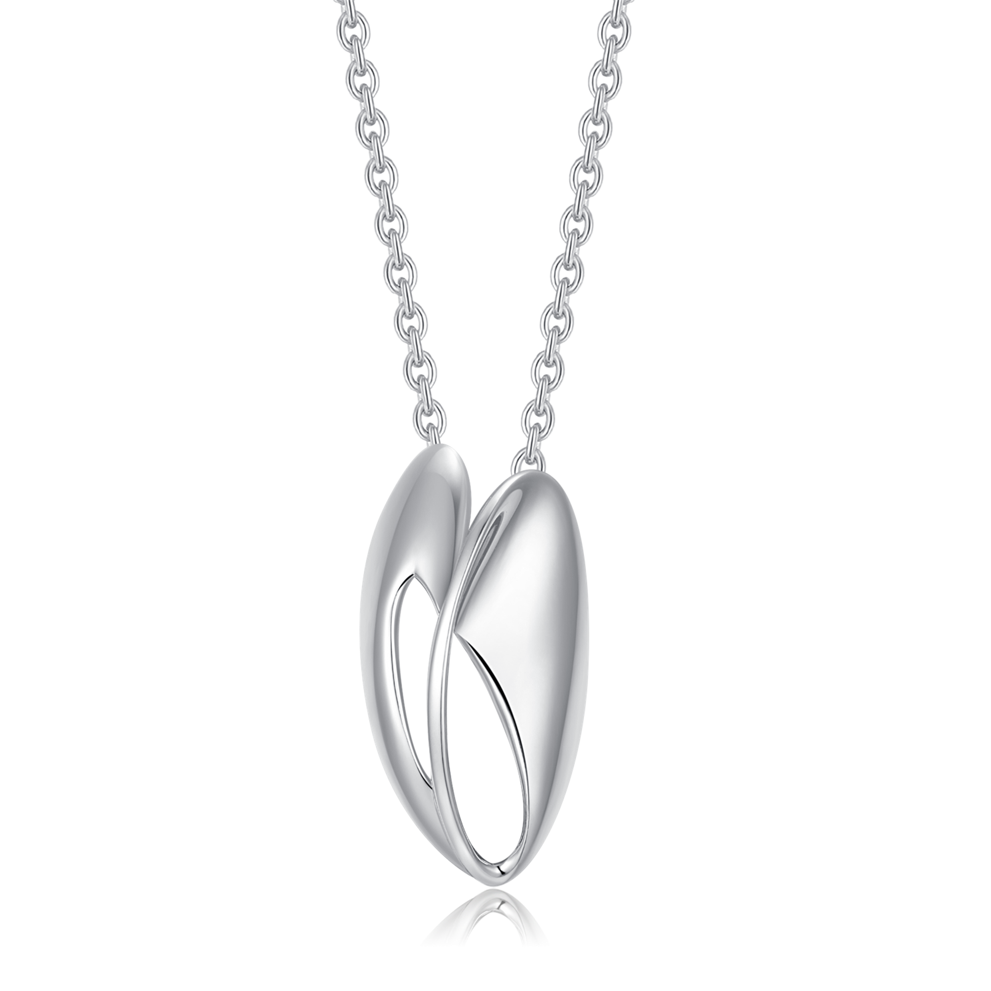 Sølv halskæde rhodineret skæv flettet aflang oval.