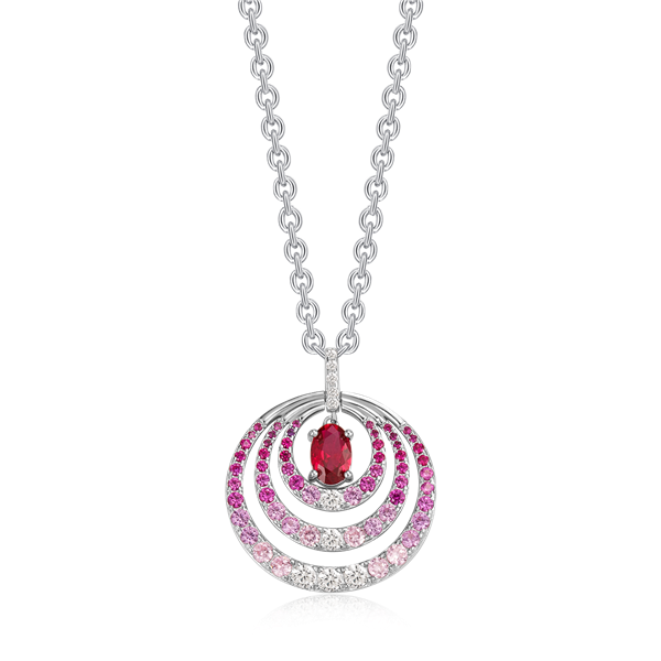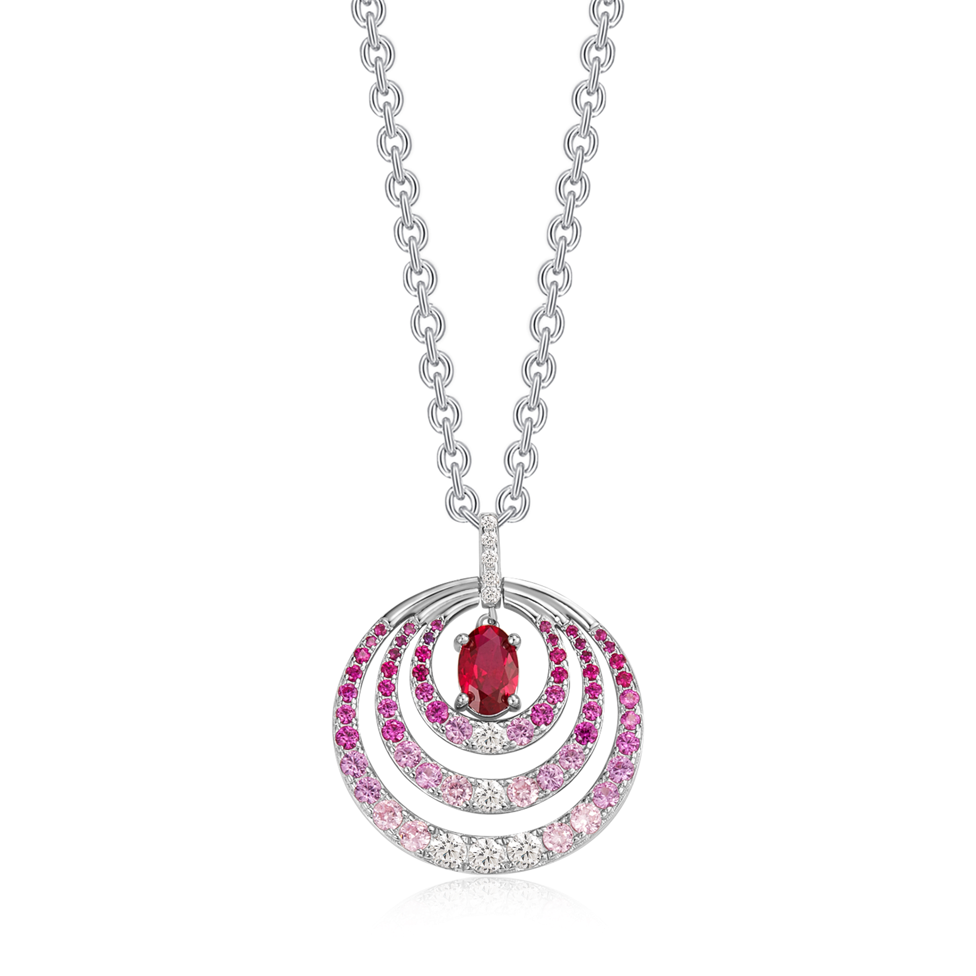 Sølv halskæde rhodineret cirkel med syntetiske cubic zirconia rubin,hvid og pink.
