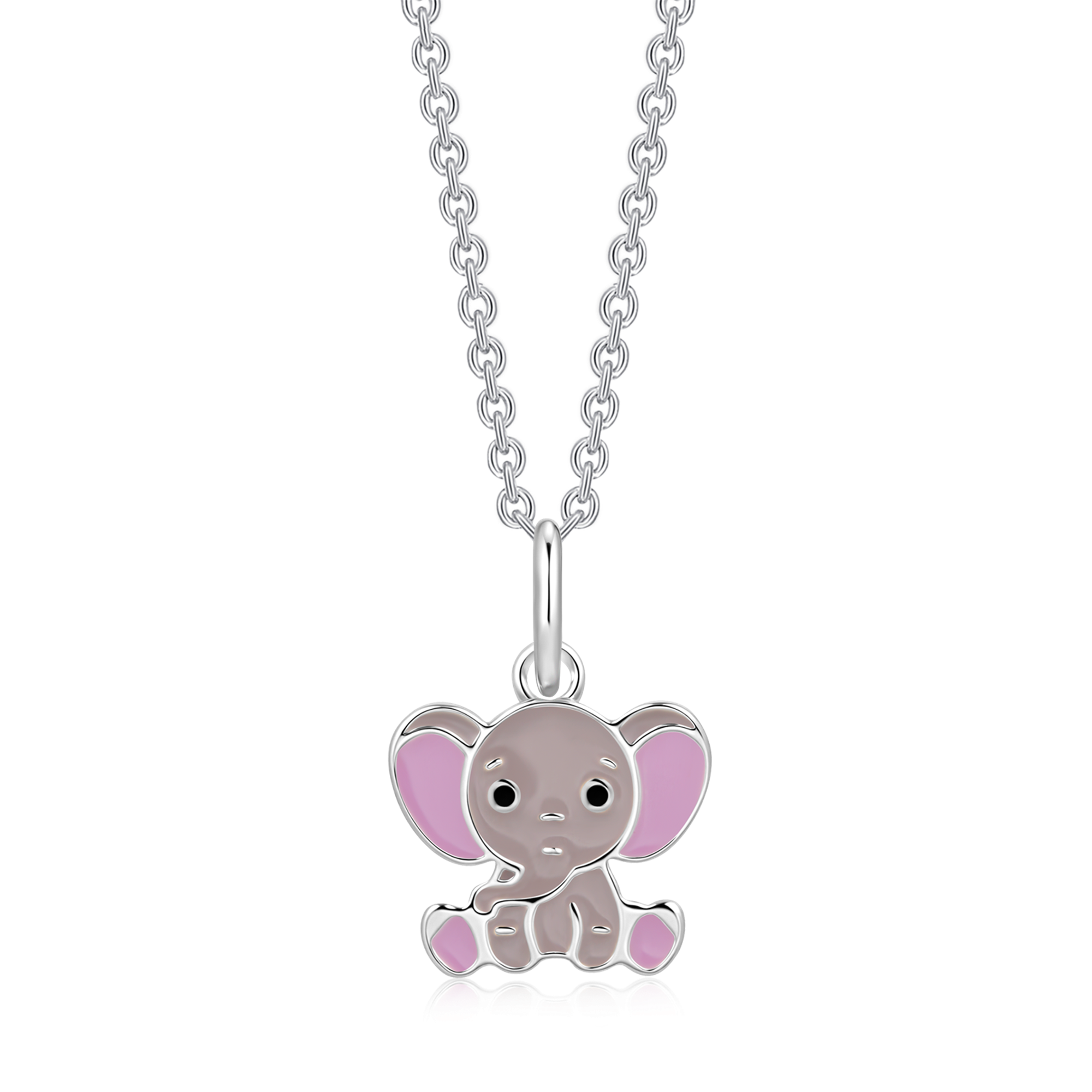 Sølv halskæde rhodineret elefant med brune på kroppen, lilla på ørerne og potter blyfri emalje.