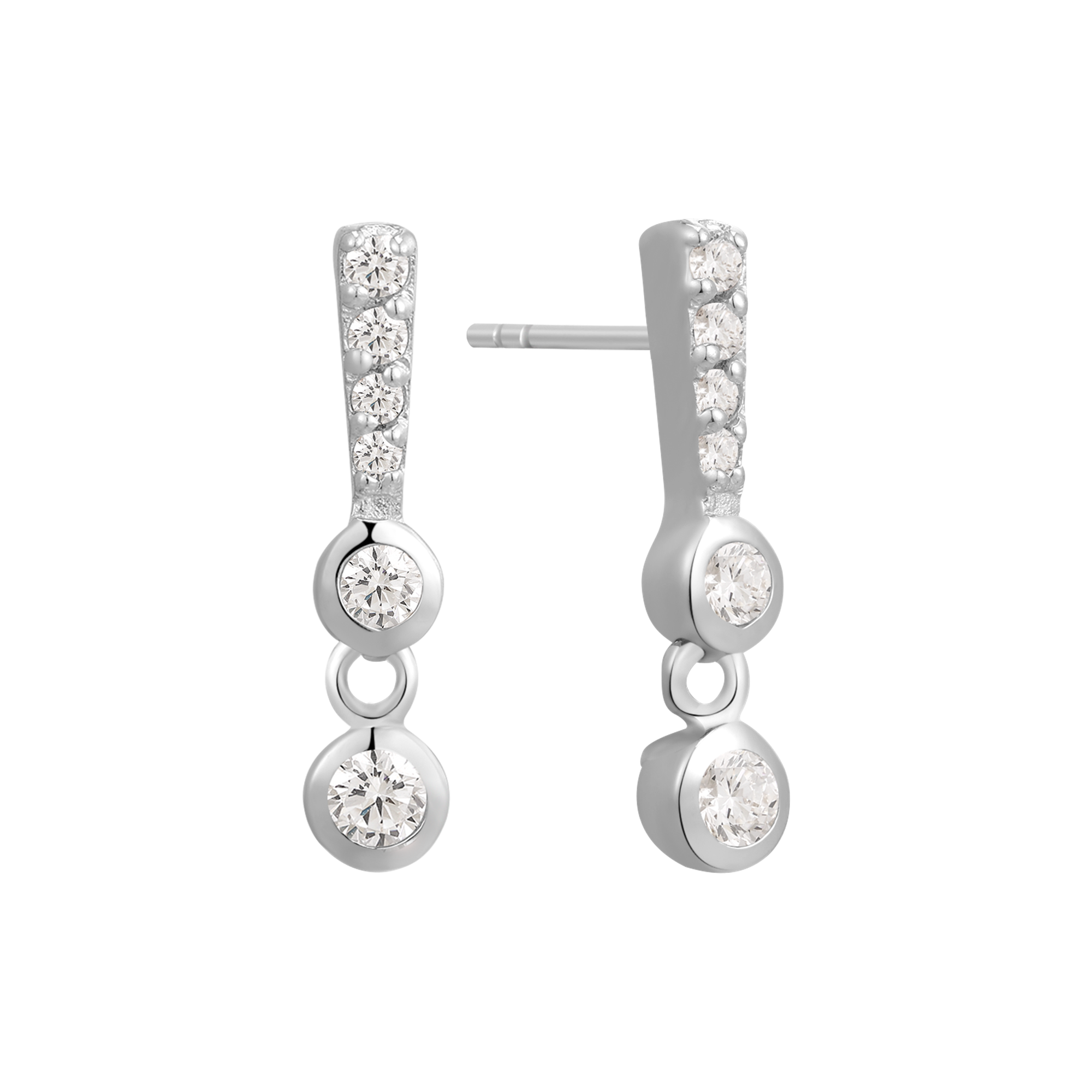 Sølv ørehænger rhodineret aflang pinde med syntetiske cubic zirconia.
