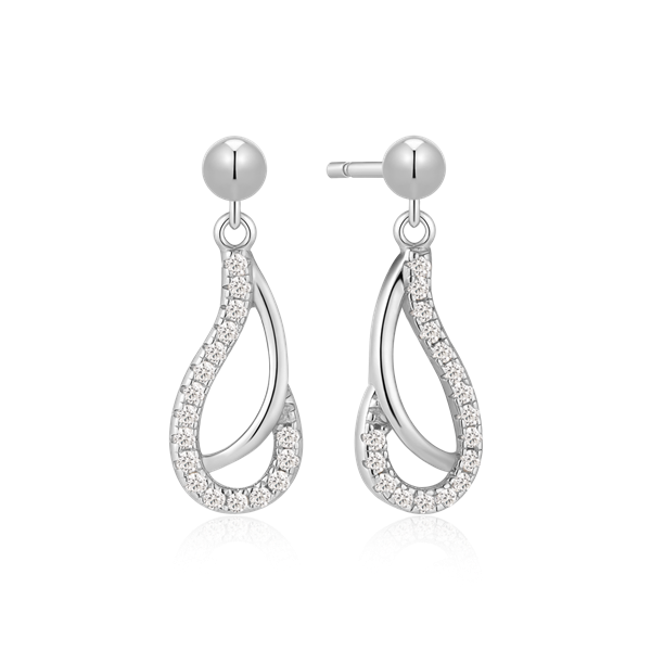 Sølv ørehænger rhodineret skæv dråbe med syntetiske cubic zirconia.