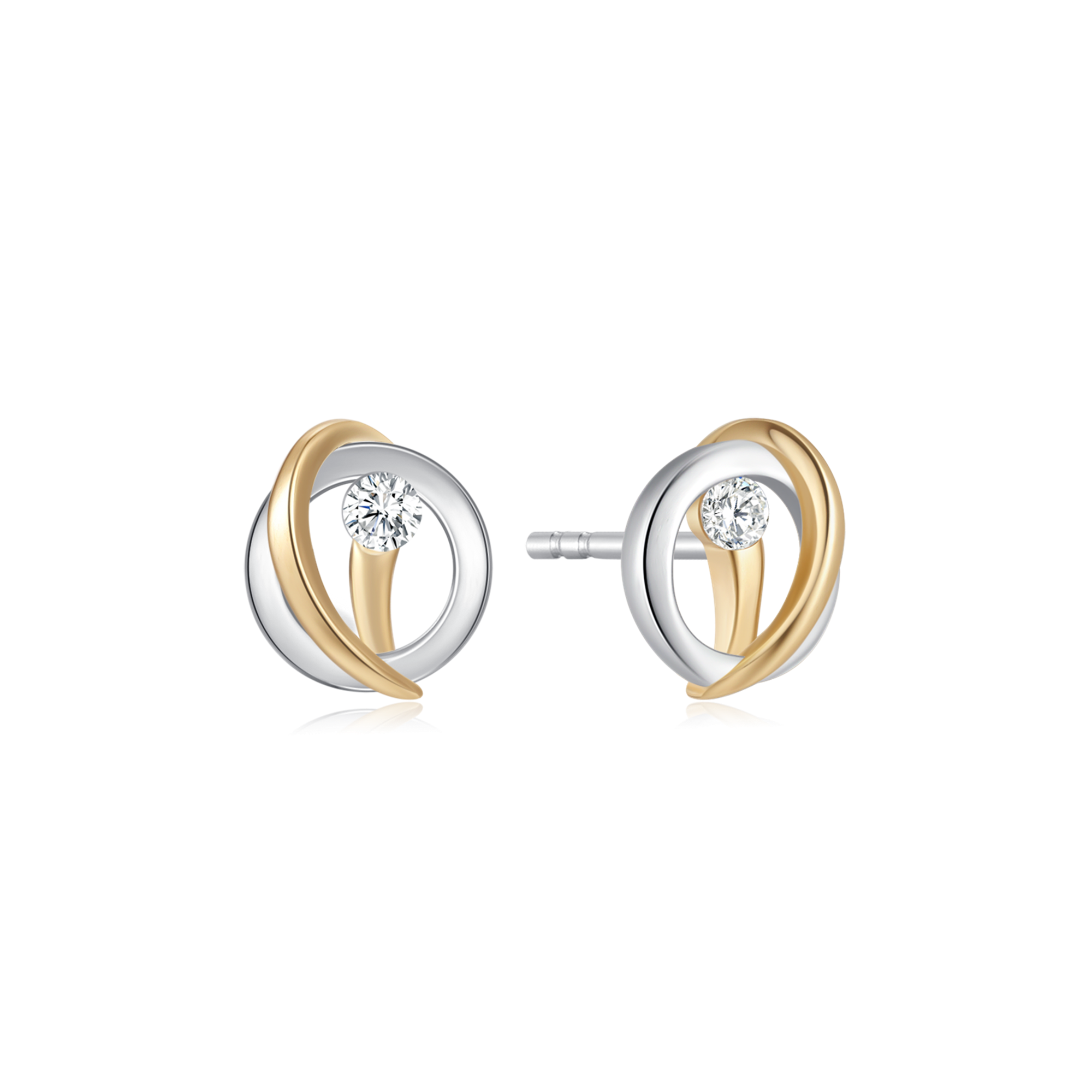 Sølv ørestikker rhodineret cirkel med forgyldt streg og en syntetisk cubic zirconia.