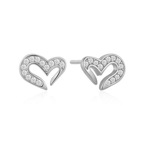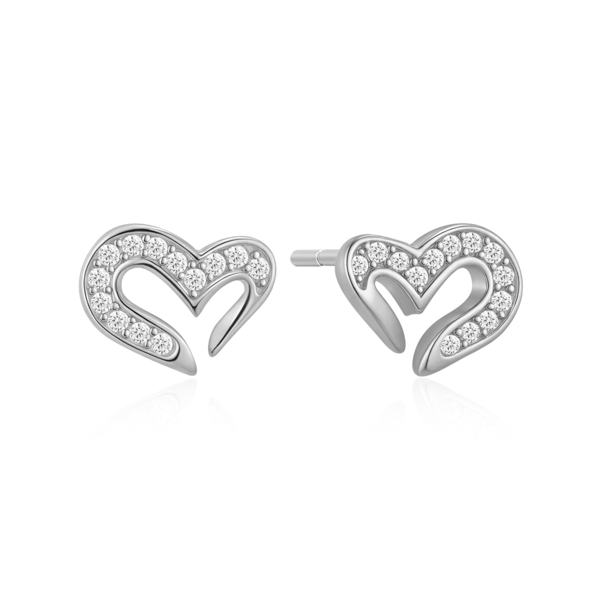 Sølv ørestikker rhodineret skæv hjerte med syntetiske cubic zirconia.