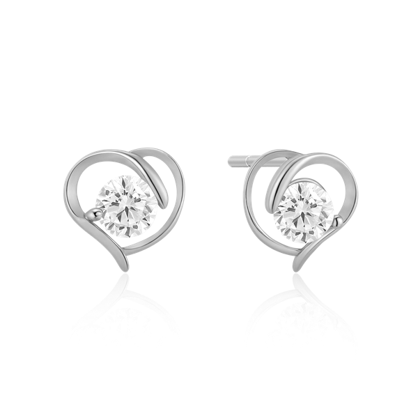Sølv ørestikker rhodineret hjerte med en syntetisk cubic zirconia.