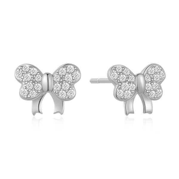 Sølv ørestikker rhodineret sløjfe med syntetiske cubic zirconia