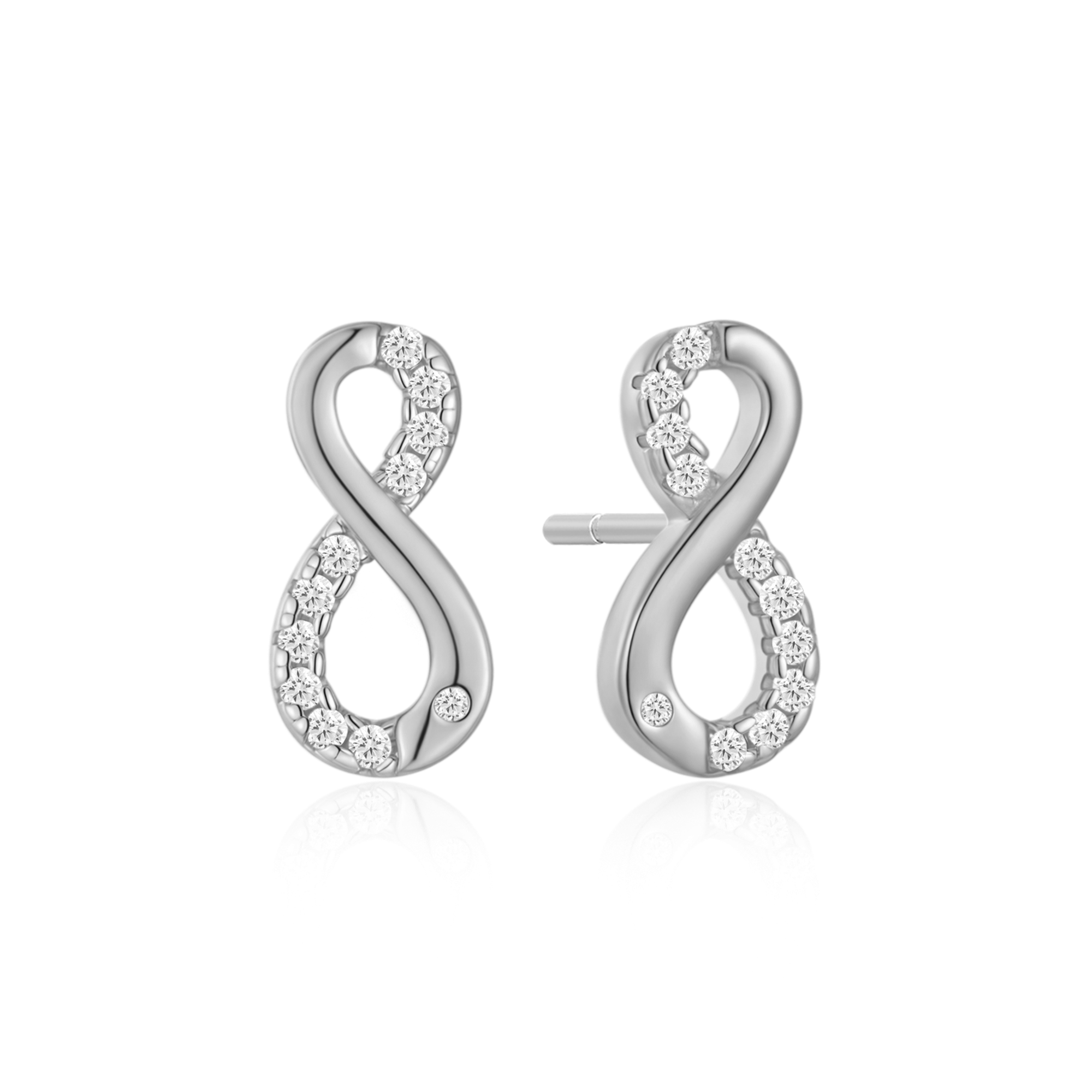 Sølv ørestikker rhodineret evighedstegn med syntetiske cubic zirconia