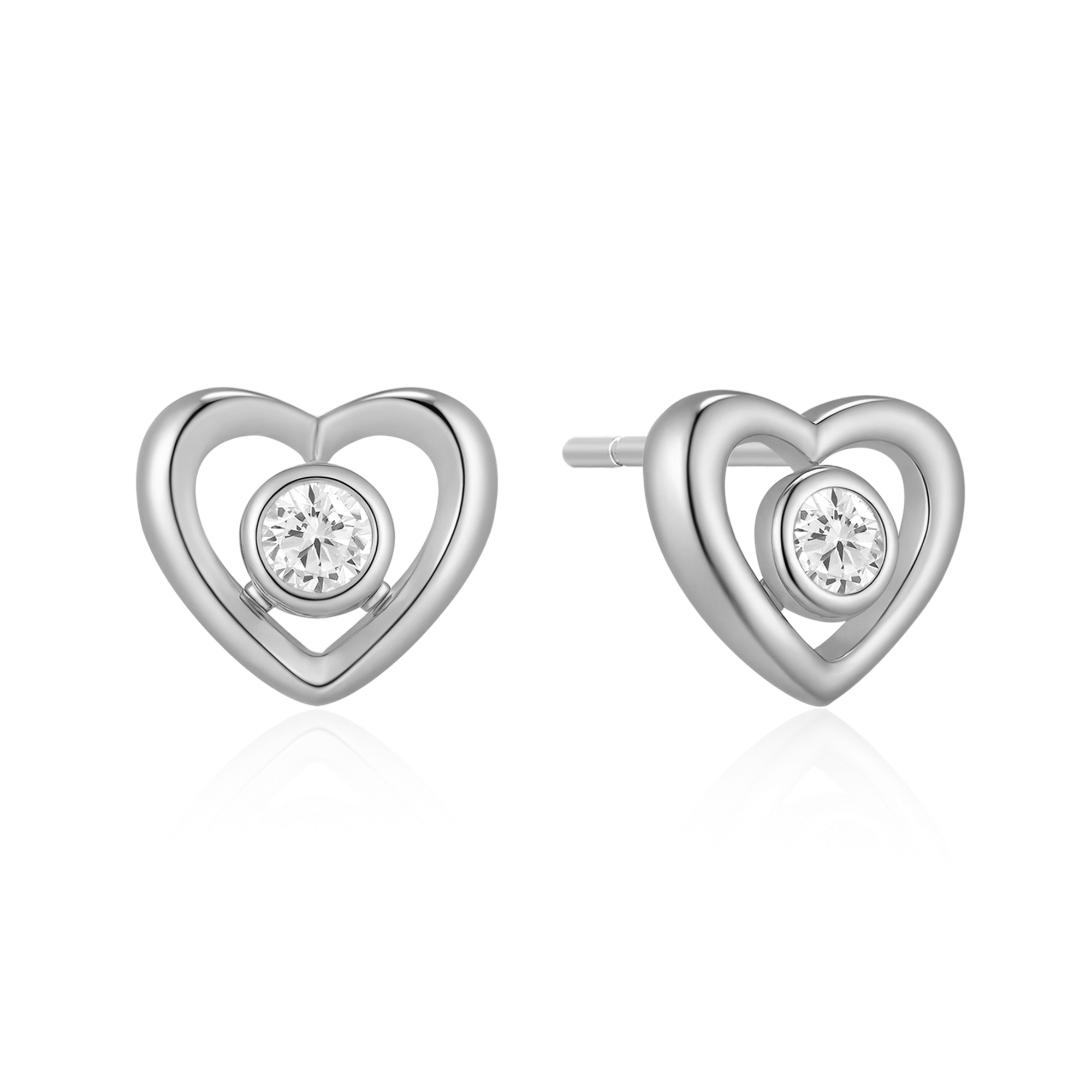 Sølv ørestikker rhodineret hjerte med syntetiske cubic zirconia