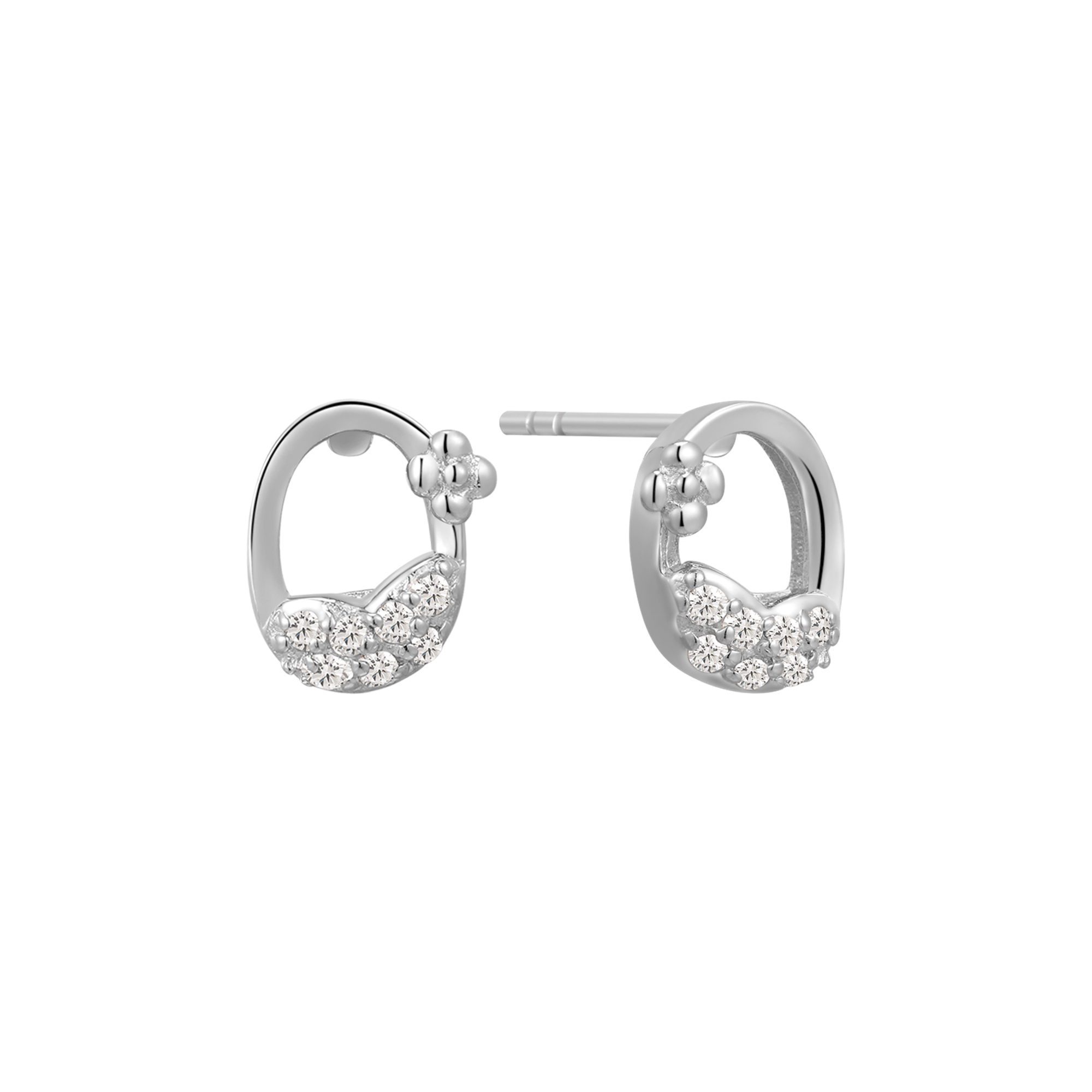Sølv ørestikker rhodineret ovall med syntetiske cubic zirconia i kanten.