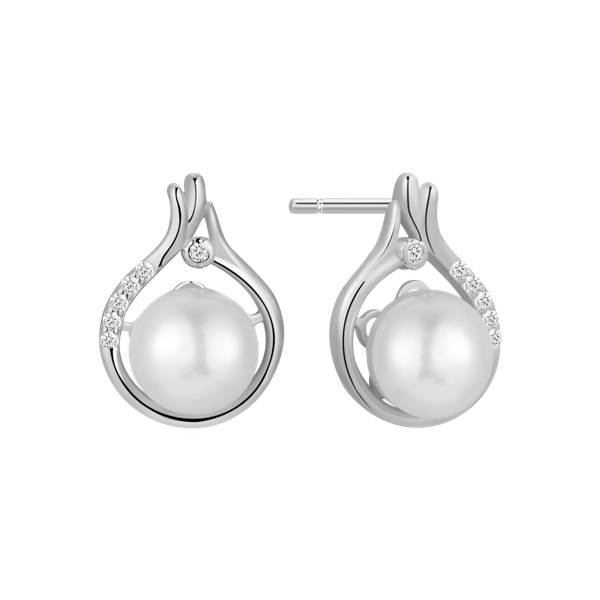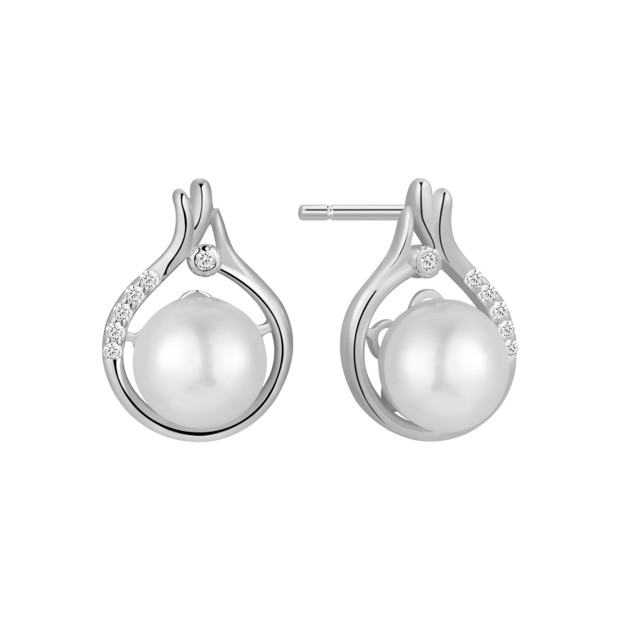 Sølv ørestikker rhodineret dråbe med syntetiske cubic zirconia og ferskvandsperle.