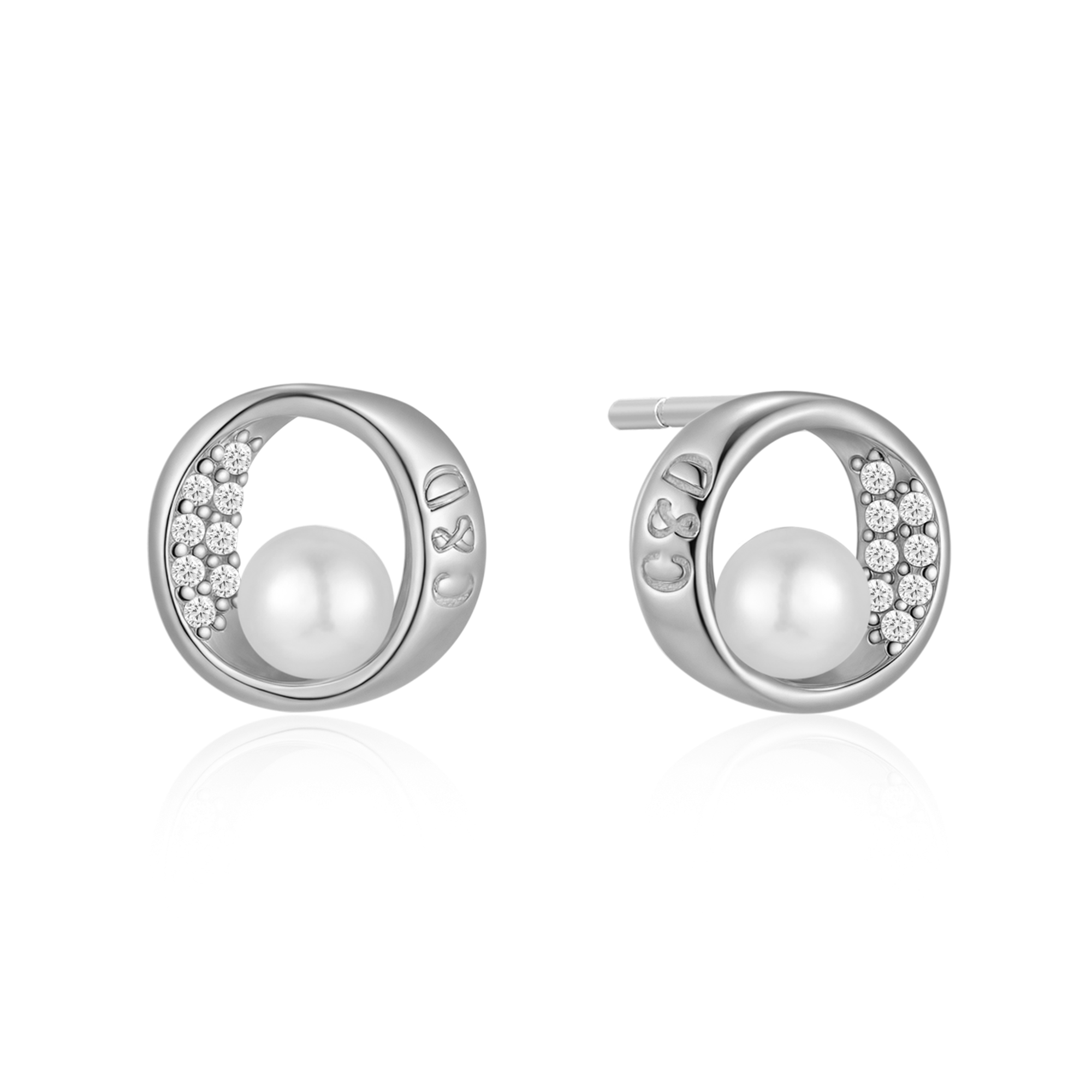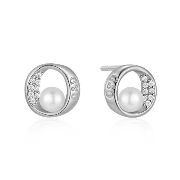 Sølv ørestikker rhodineret oval med syntetiske cubic zirconia ferskvandsperle.