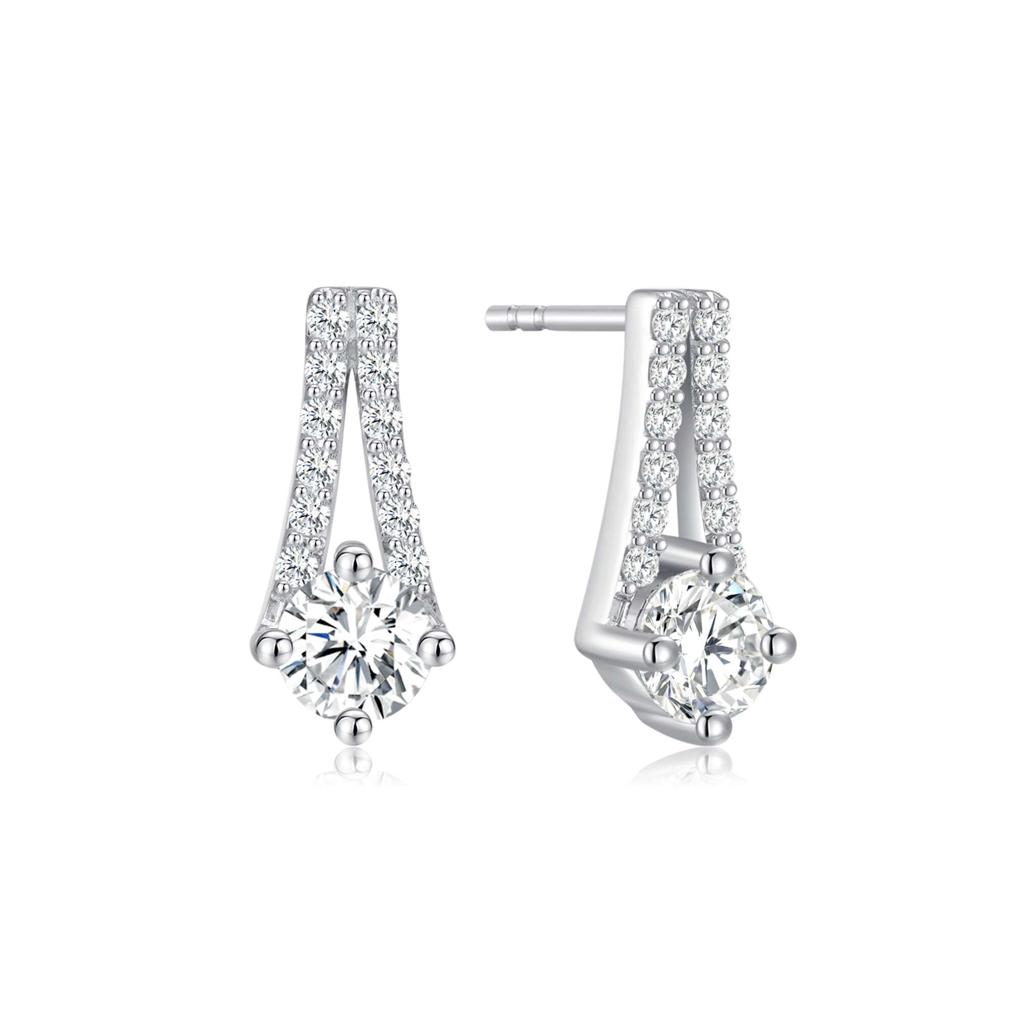 Sølv ørestikker rhodineret 2 pind med syntetiske cubic zirconia i kanten og en stor i bunden .