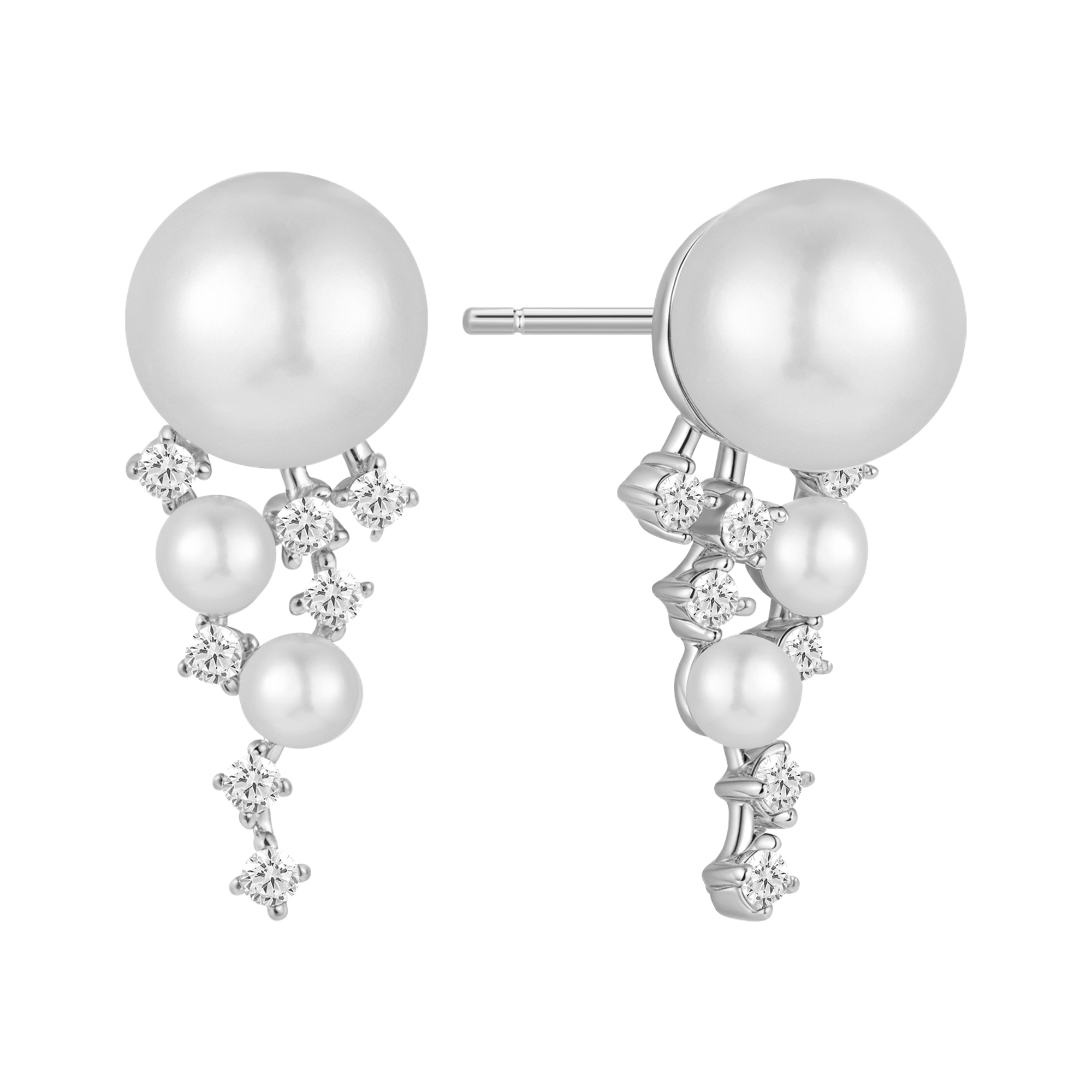 Sølv ørestikker rhodineret ferskvandsperle med syntetiske cubic zirconia.