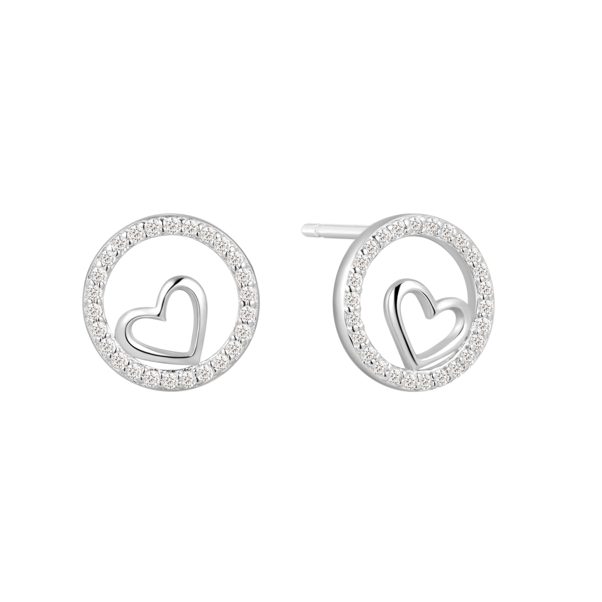 Sølv ørestikker rhodineret cirkel med hjerte og syntetiske cubic zirconia.
