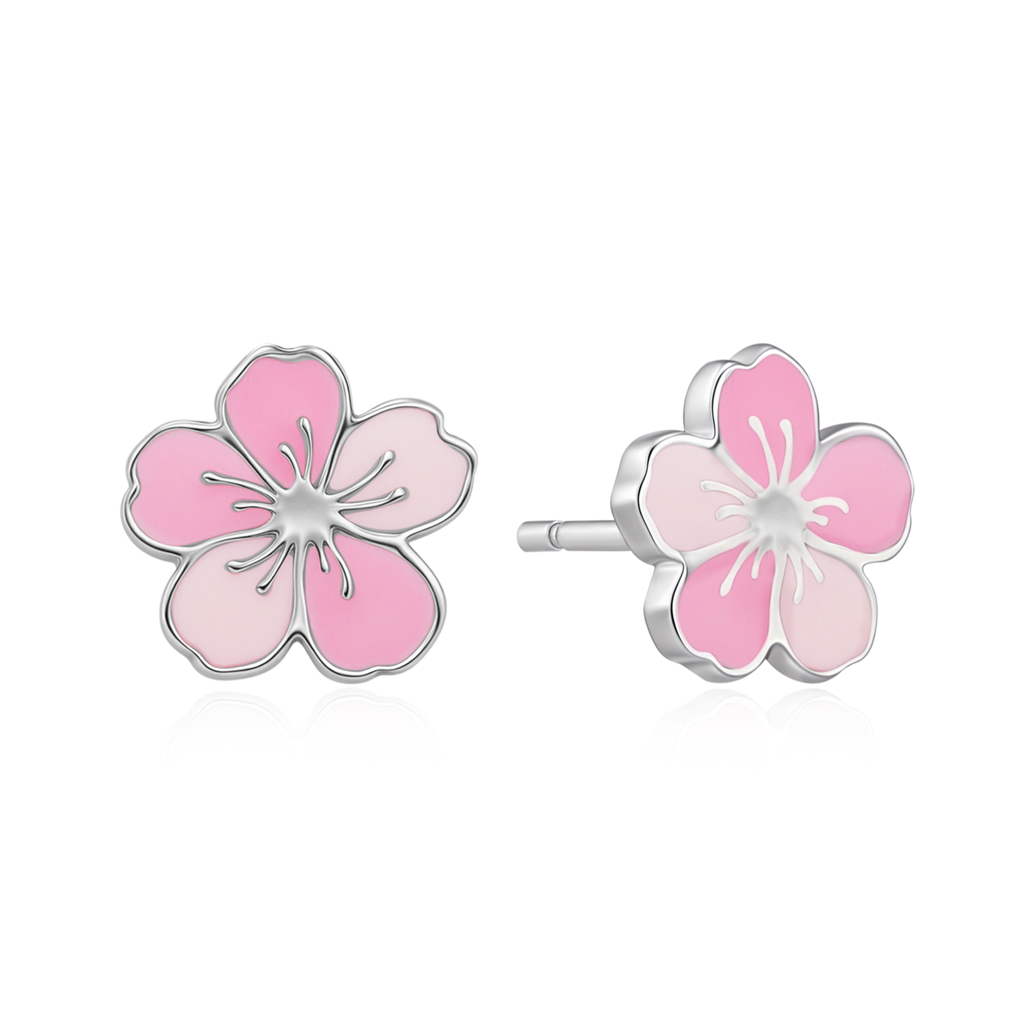 Sølv ørestikker rhodineret blomst i lyserød og pink blyfri emalje.