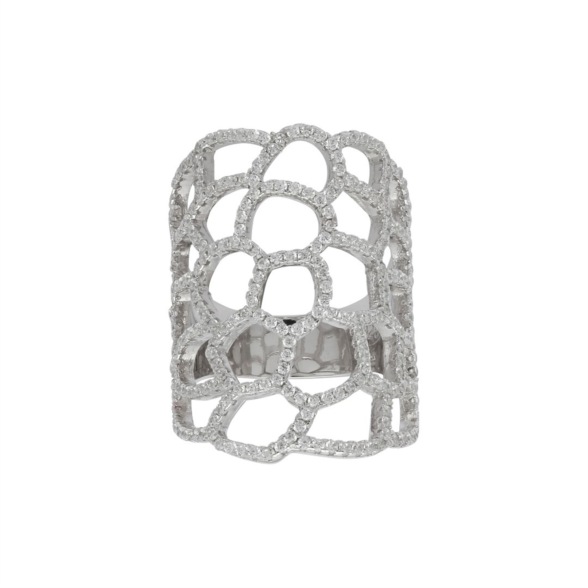 Udtryk din personlige stil med denne kunstneristiske statement ring fra vores Alaine serie. Den rhodineret sølvring, med håndsatte funklende zirkonia sten, er uden tvivl en show-stopper! Sæt ringen i fokus ved at style den med et enkelt og minimalistis