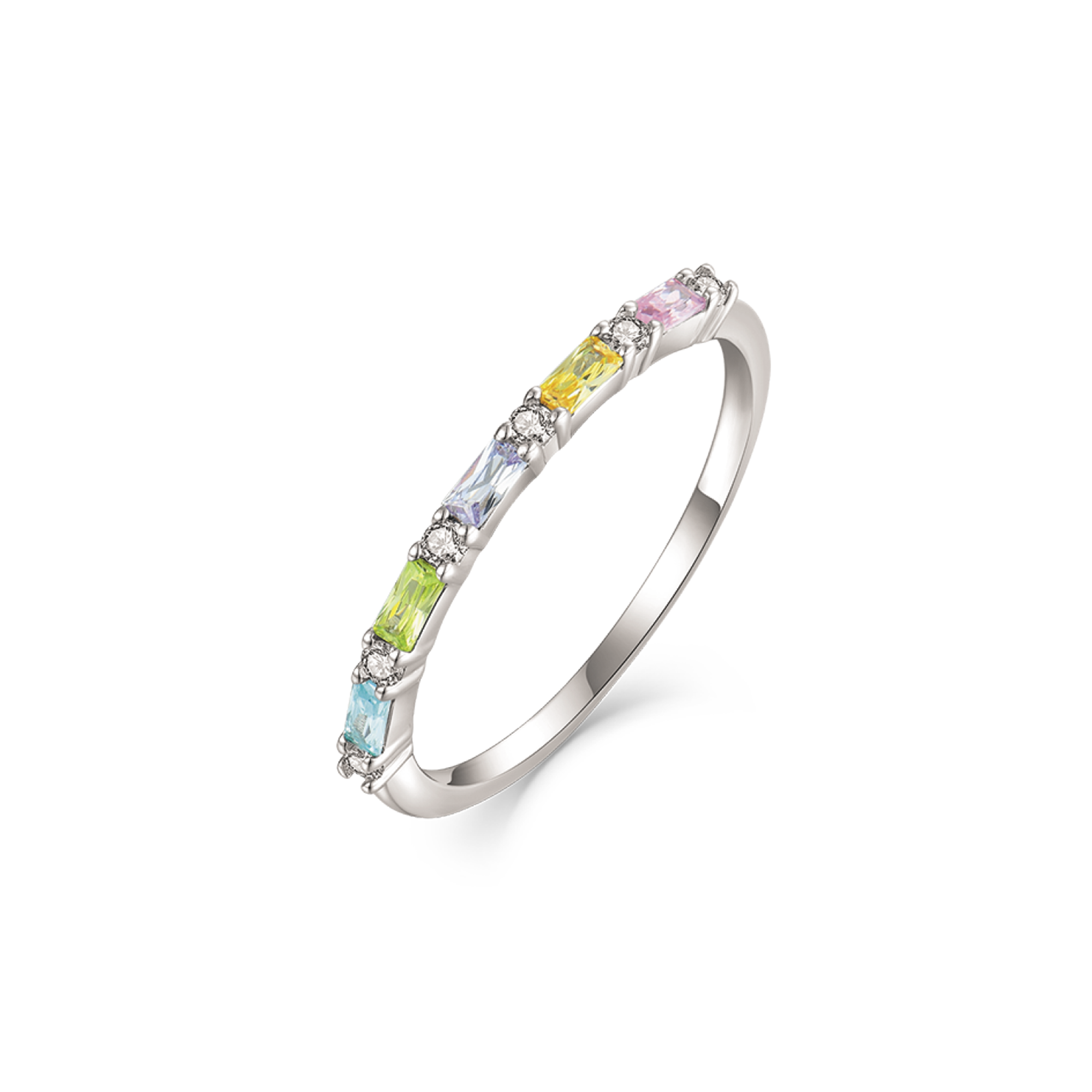 Sølv ring rhodineret skinne med farvet syntetiske cubic zirconia.