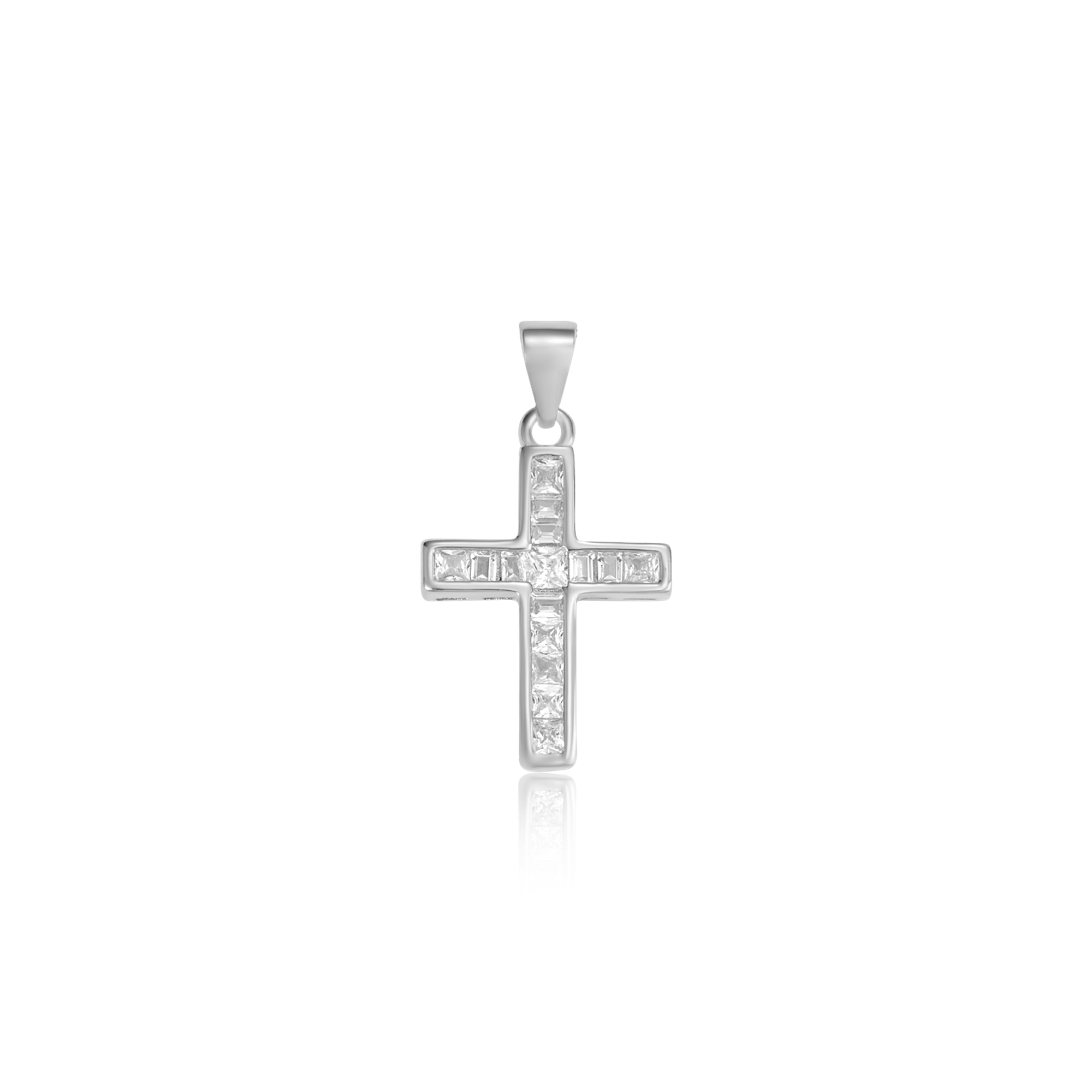 Sølv vedhæng rhodineret kors med syntetiske cubic zirconia.