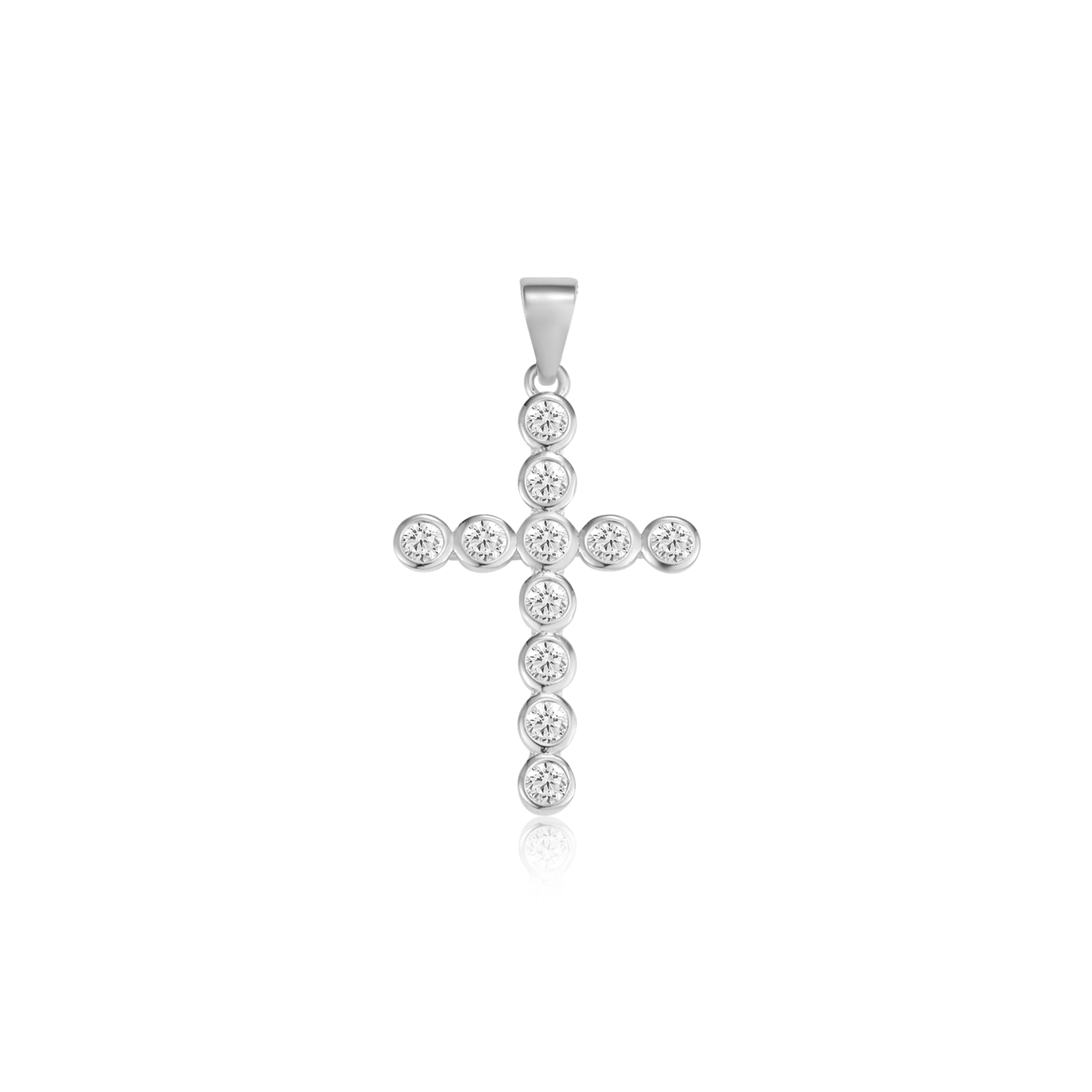 Sølv vedhæng rhodinere kors med syntetiske cubic zirconia.