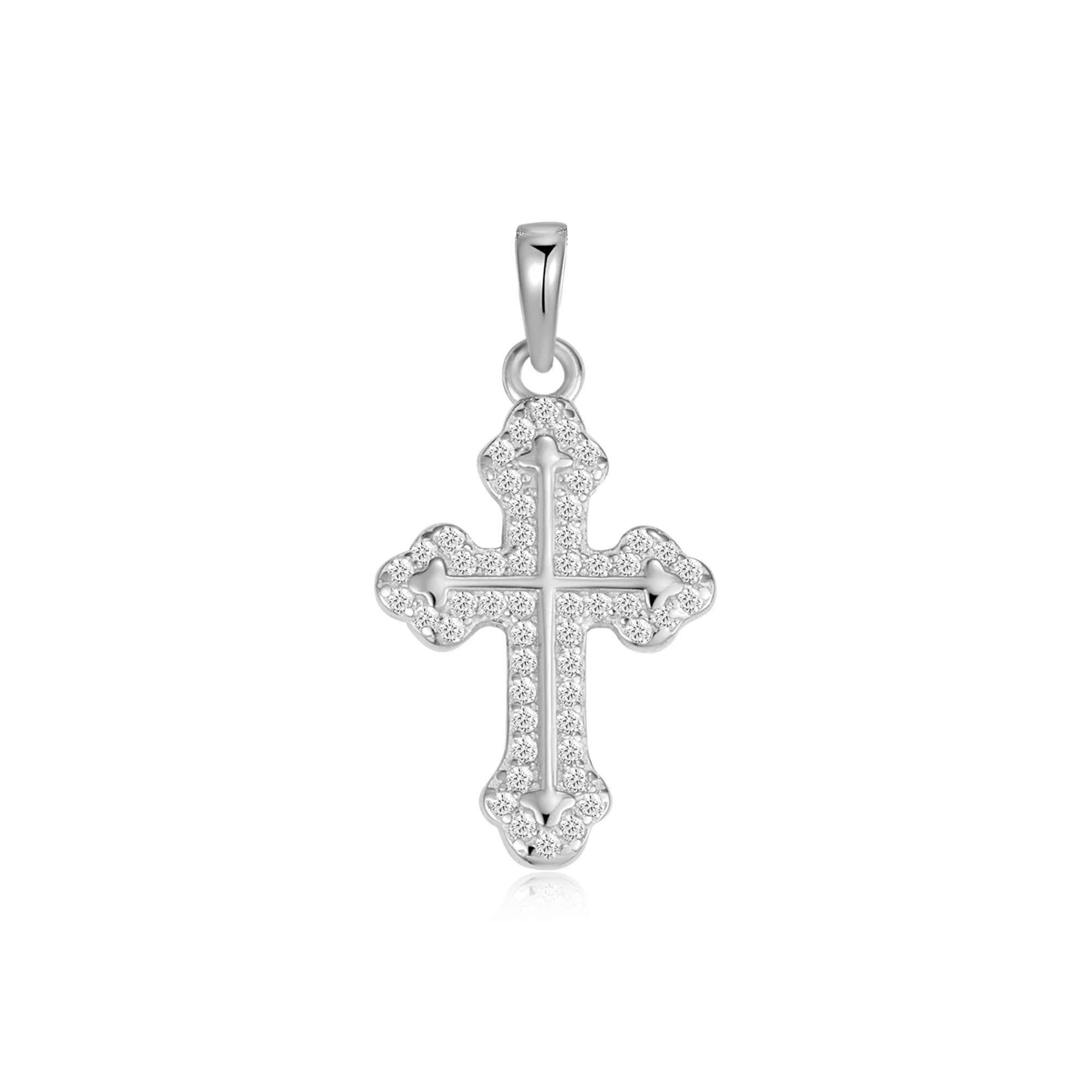 Sølv vedhæng rhodineret kors med syntetiske cubic zirconia.