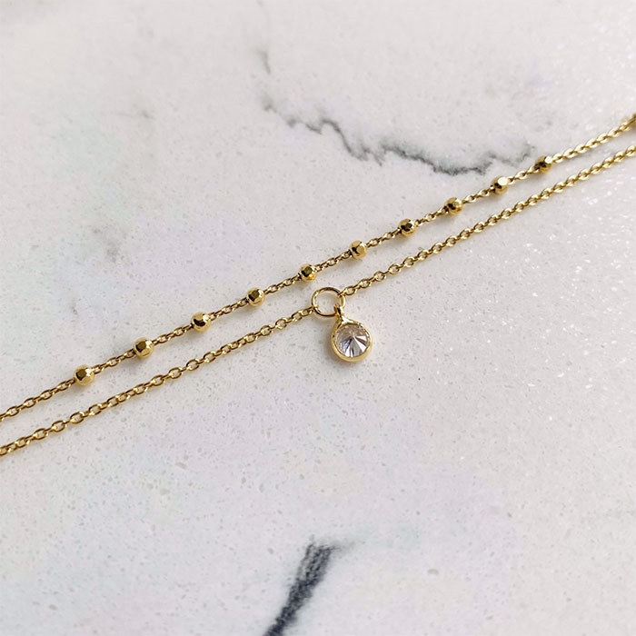 Sølvankelkæde fg med zirkonia - 24+3 cm