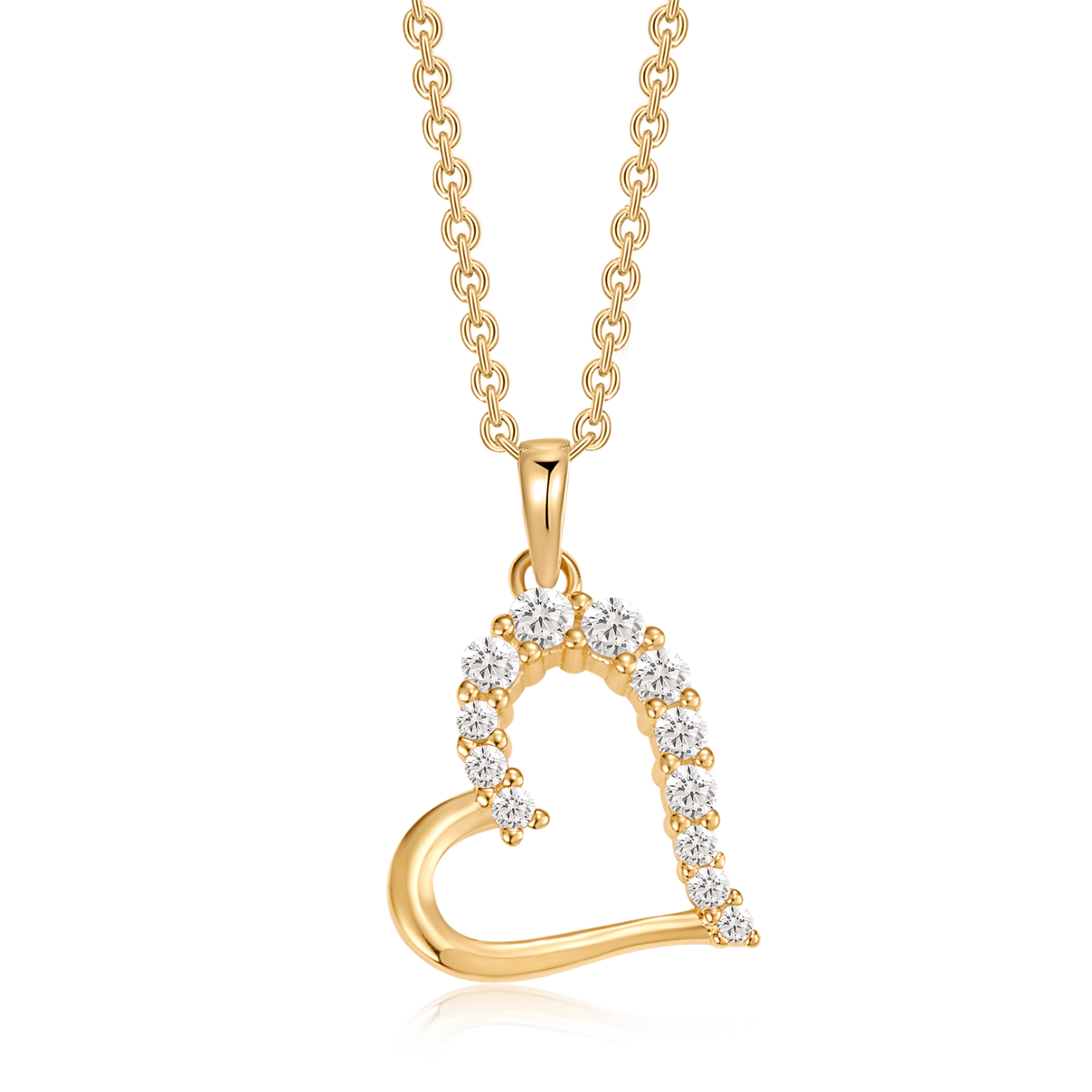 Sølvforgyldt halskæde skæv hjerte med syntetiske cubic zirconia.