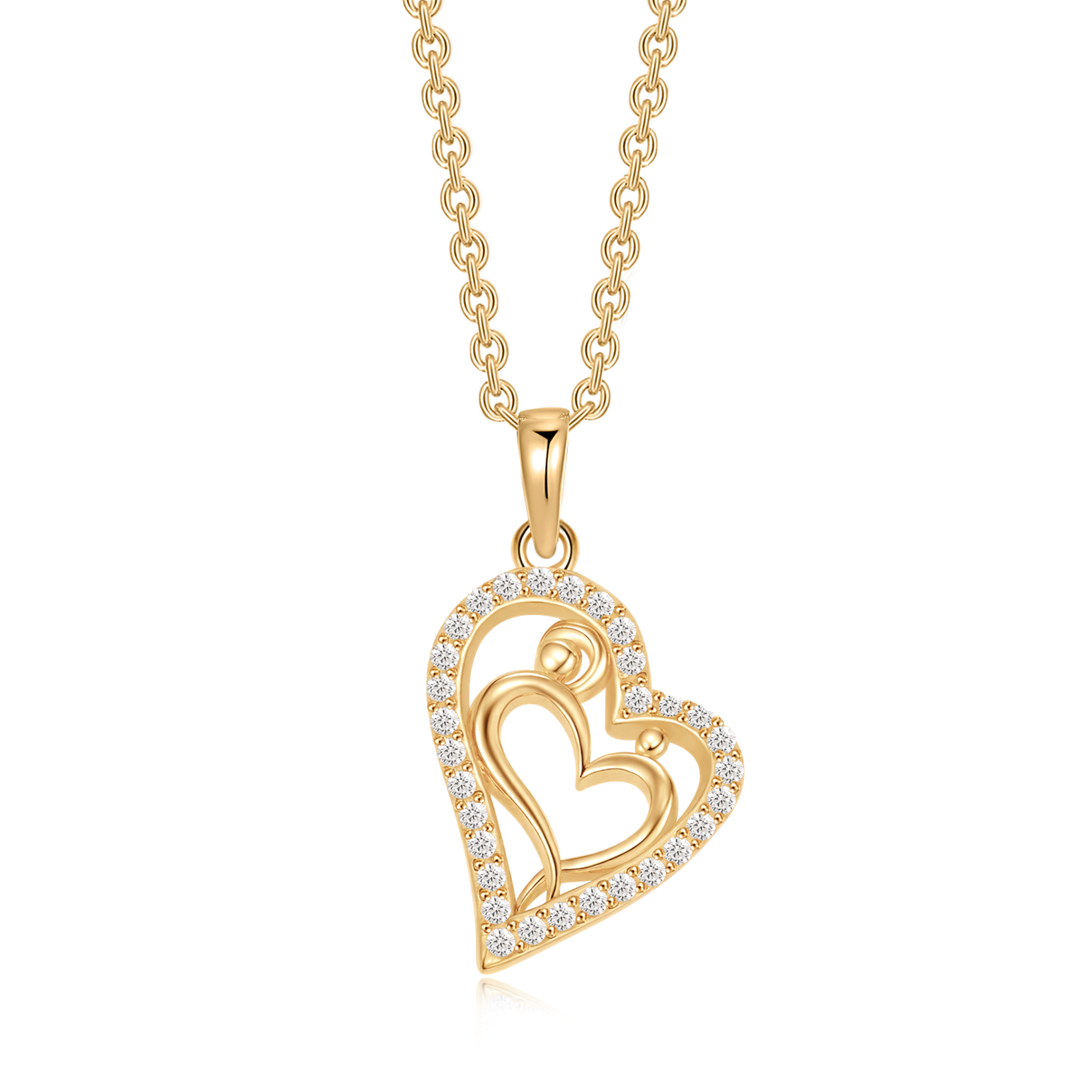 Sølvforgyldt halskæde skæv hjerte med mor & barn og syntetiske cubic zirconia.