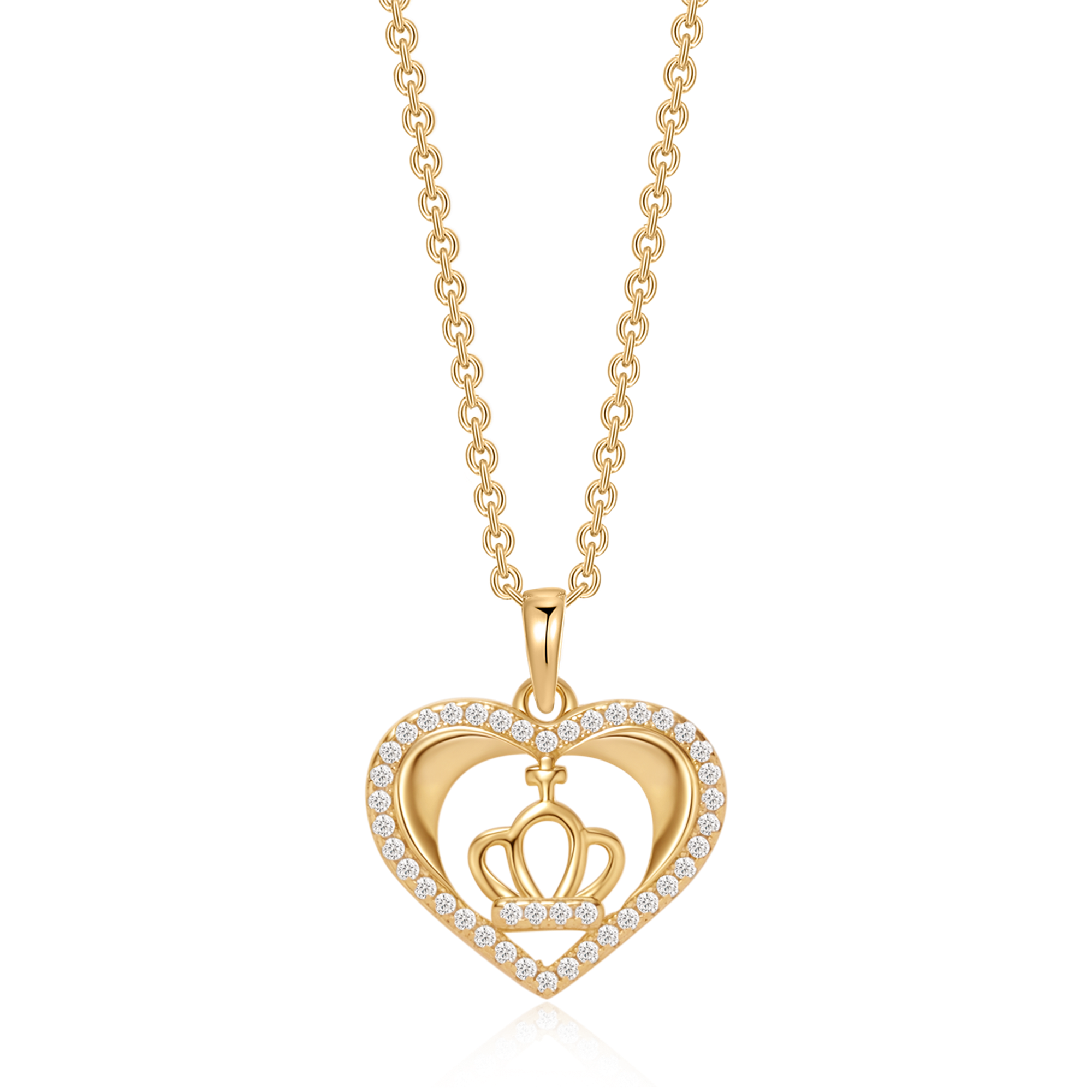 Sølvforgyldt halskæde hjerte med krone og syntetiske cubic zirconia.