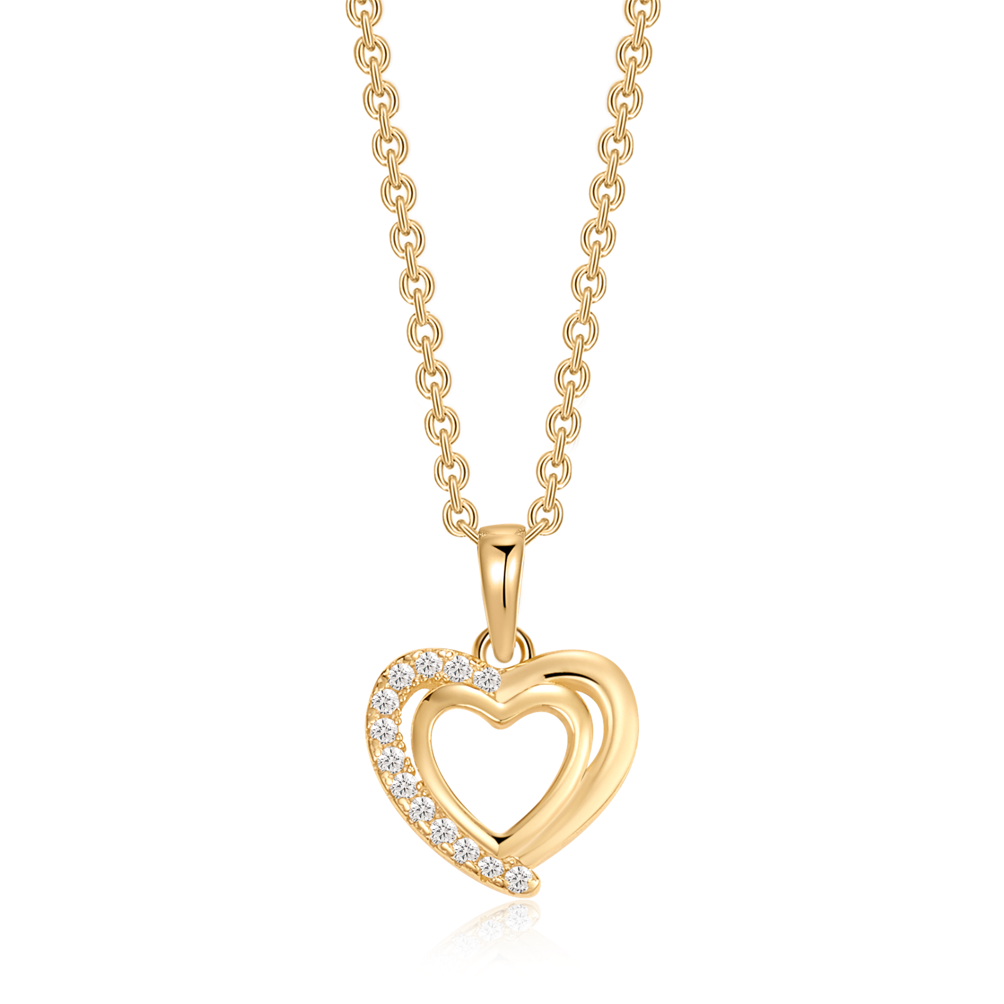 Sølvforgyldt halskæde dobbelt hjerte med syntetiske cubic zirconia.