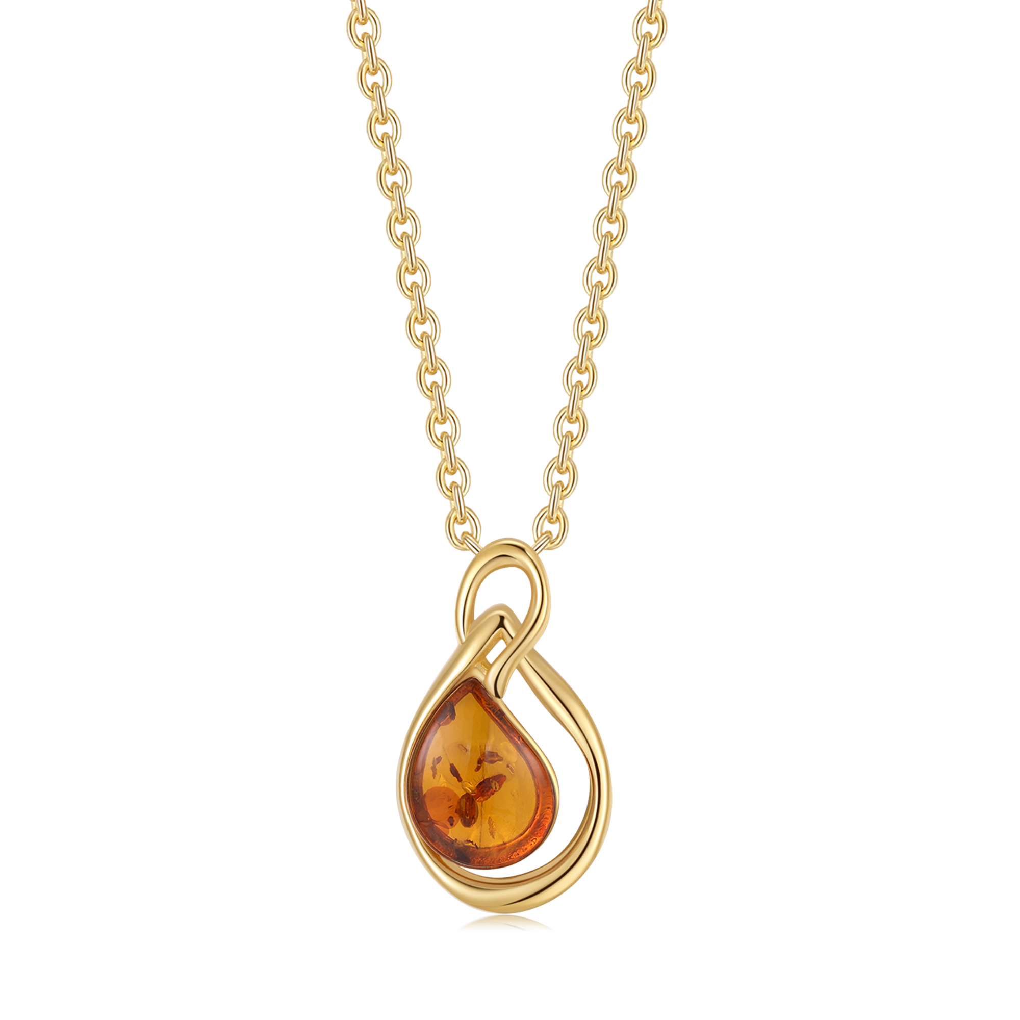 Sølvforgyldt halskæde rav i ring med ring omkring.