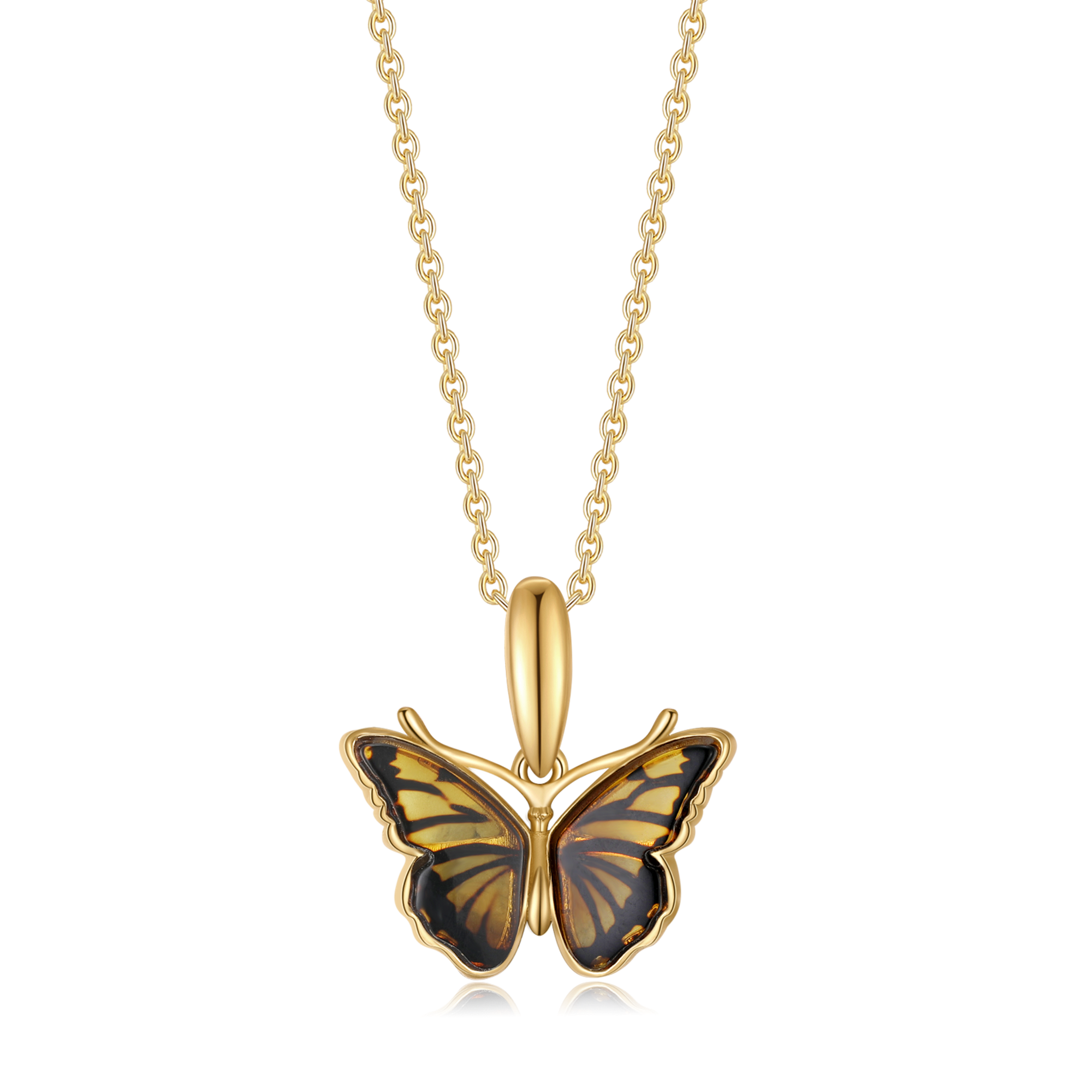 Sølvforgyldt halskæde sort sommerfugl med rav.