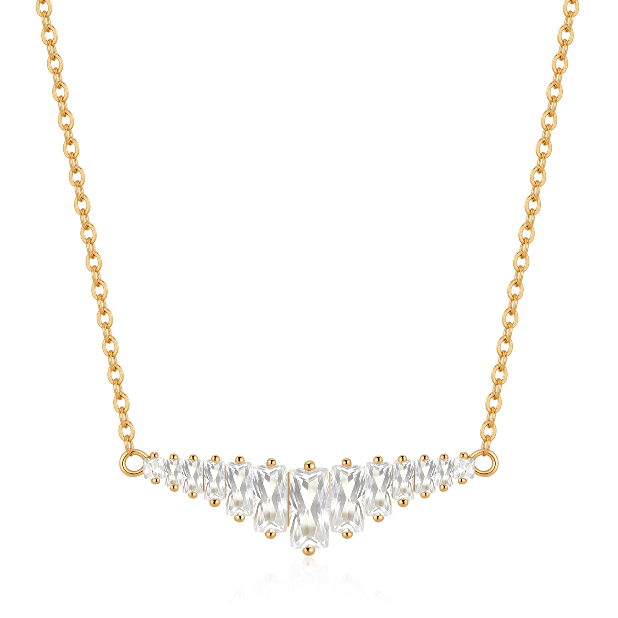 Sølvforgyldt halskæde aflang trekant med 6 forskellige størrelse syntetiske cubic zirconia.