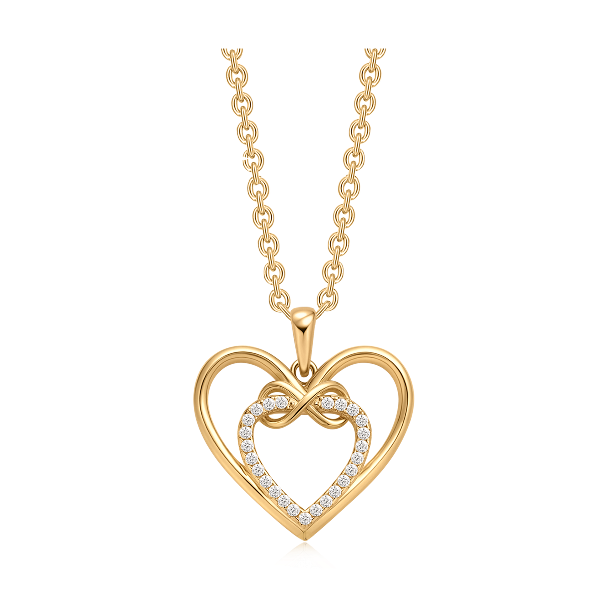 Sølvforgyldt halskæde dobbelt hjerter med syntetiske cubic zirconia og evighedstegn.