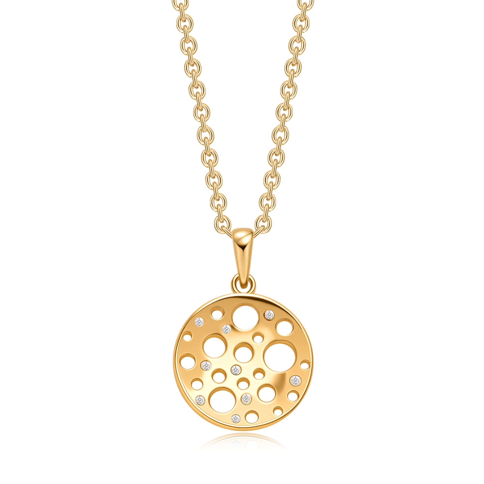 Sølvforgyldt halskæde cirkel med huller og syntetiske cubic zirconia.