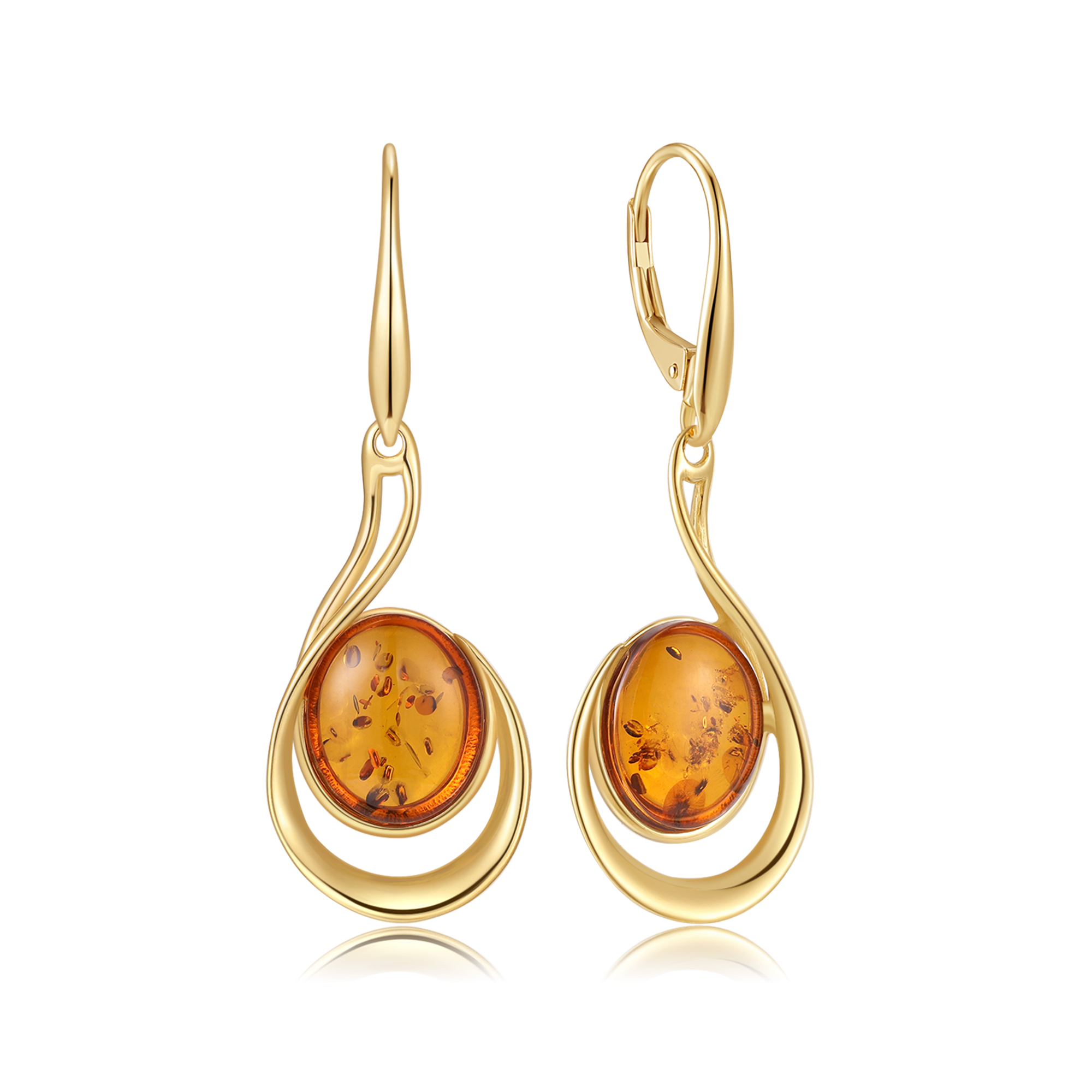 Sølvforgyldt ørehængere rav i ring med ring omkring.