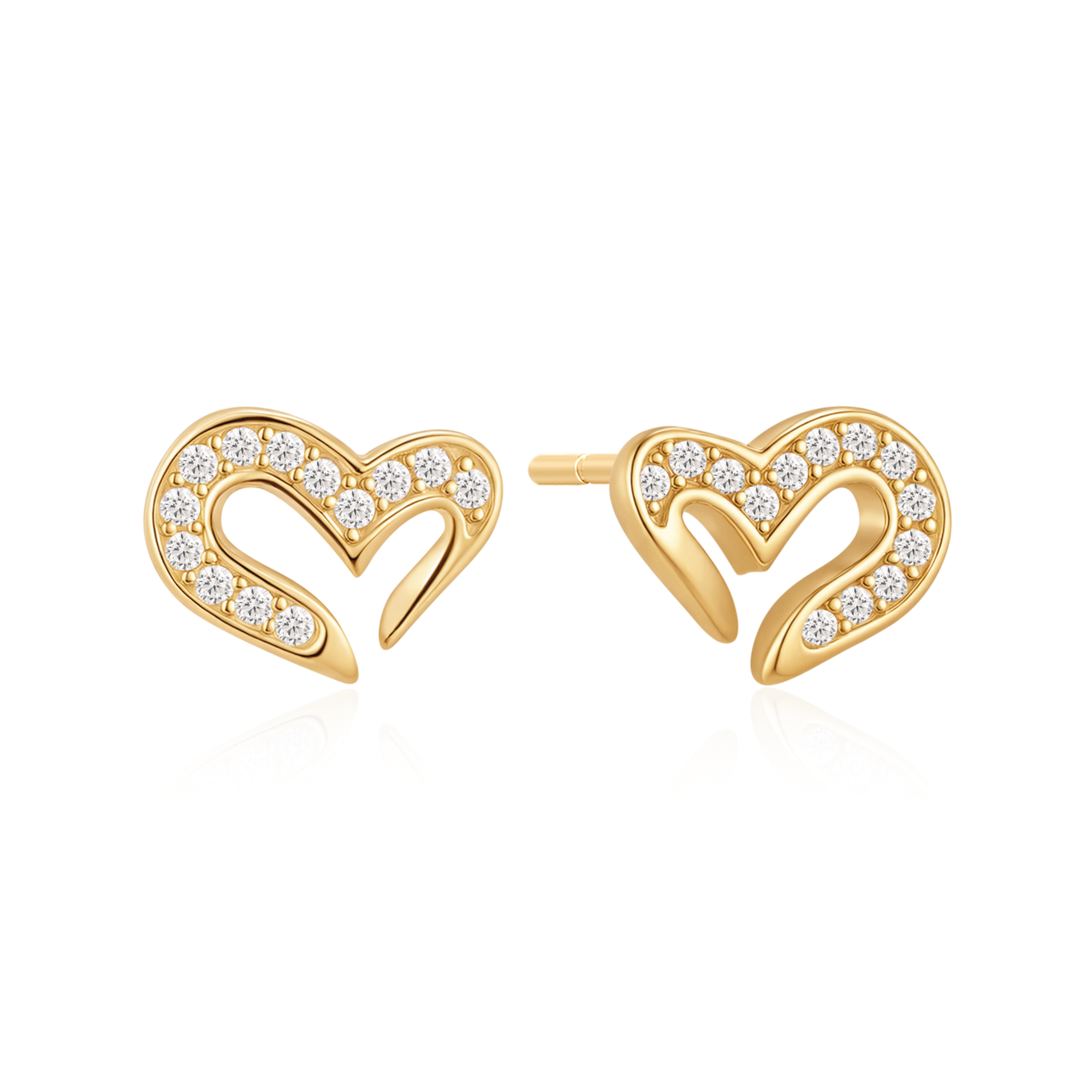 Sølvforgyldt ørestikker skæv hjerte med syntetisk cubic zirconia.