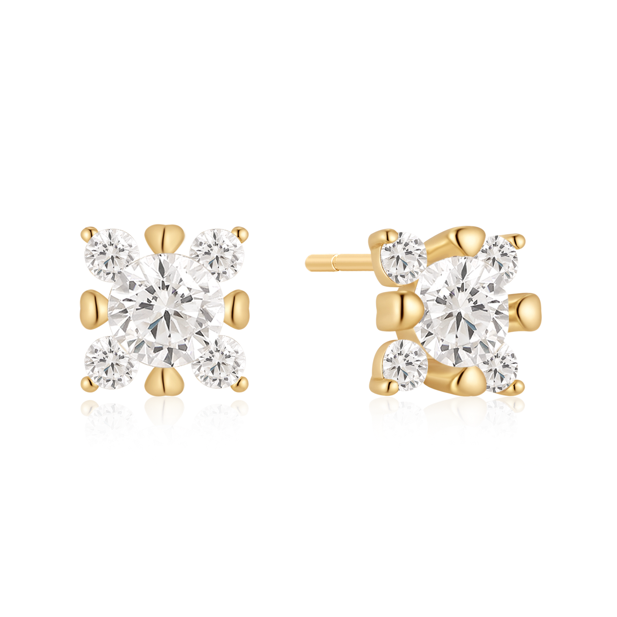 Sølvforgyldt ørestikker dobbelt blomster med syntetiske cubic zirconia.