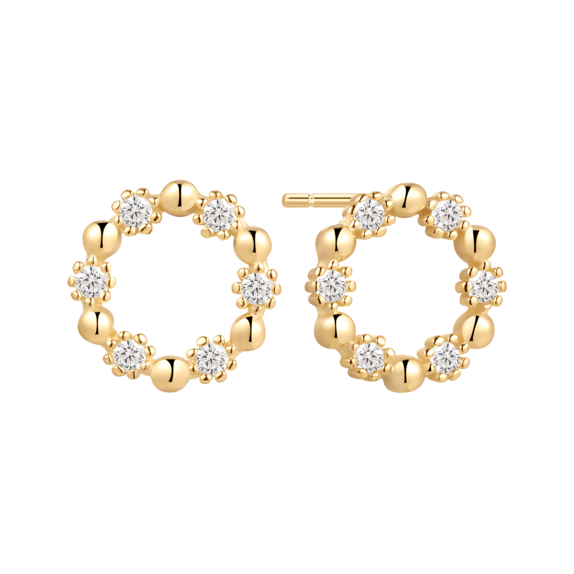 Sølvforgyldt ørestikker cirkel med syntetiske cubic zirconia rundt om kanten.