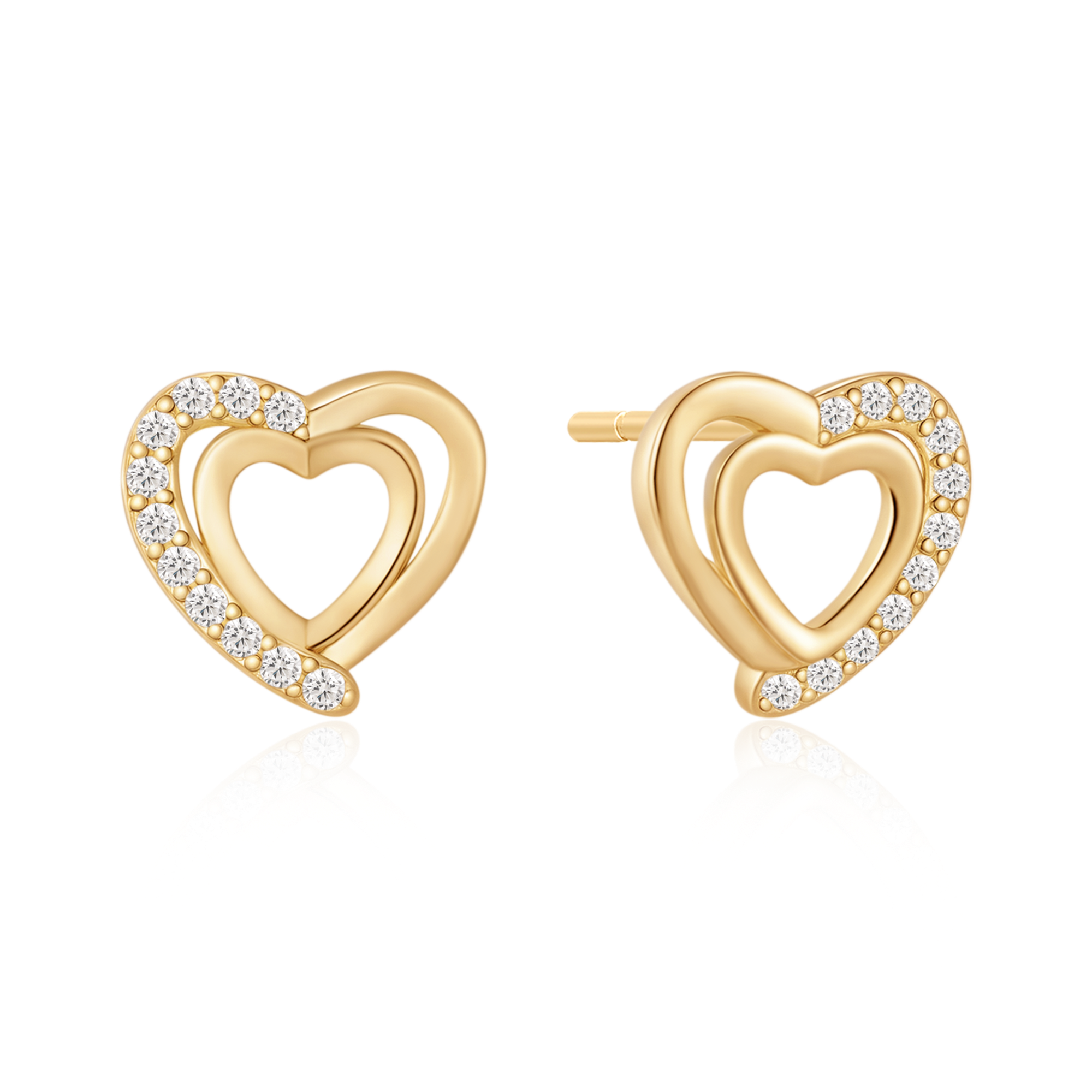 Sølvforgyldt ørestikker dobbelt hjerte med syntetiske cubic zirconia.