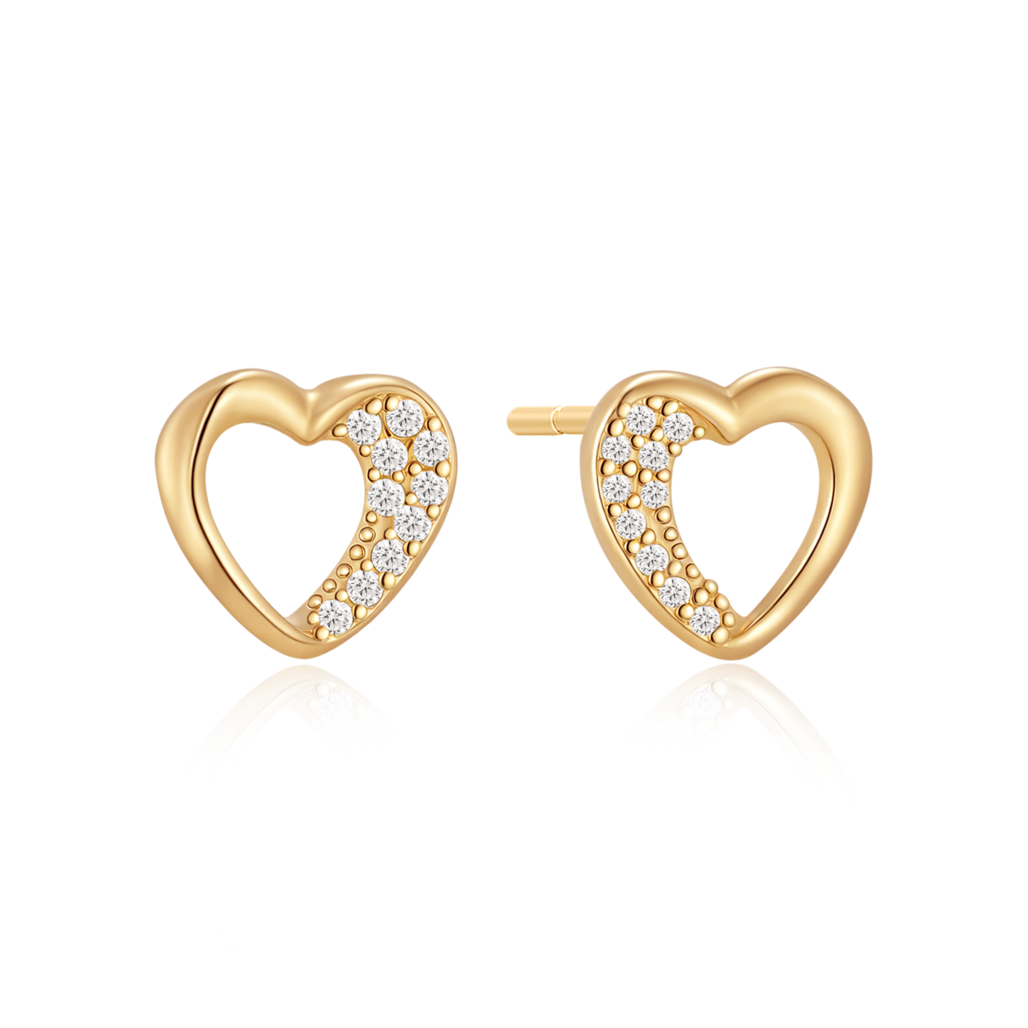 Sølvforgyldt ørestikker hjerte med syntetiske cubic zirconia.