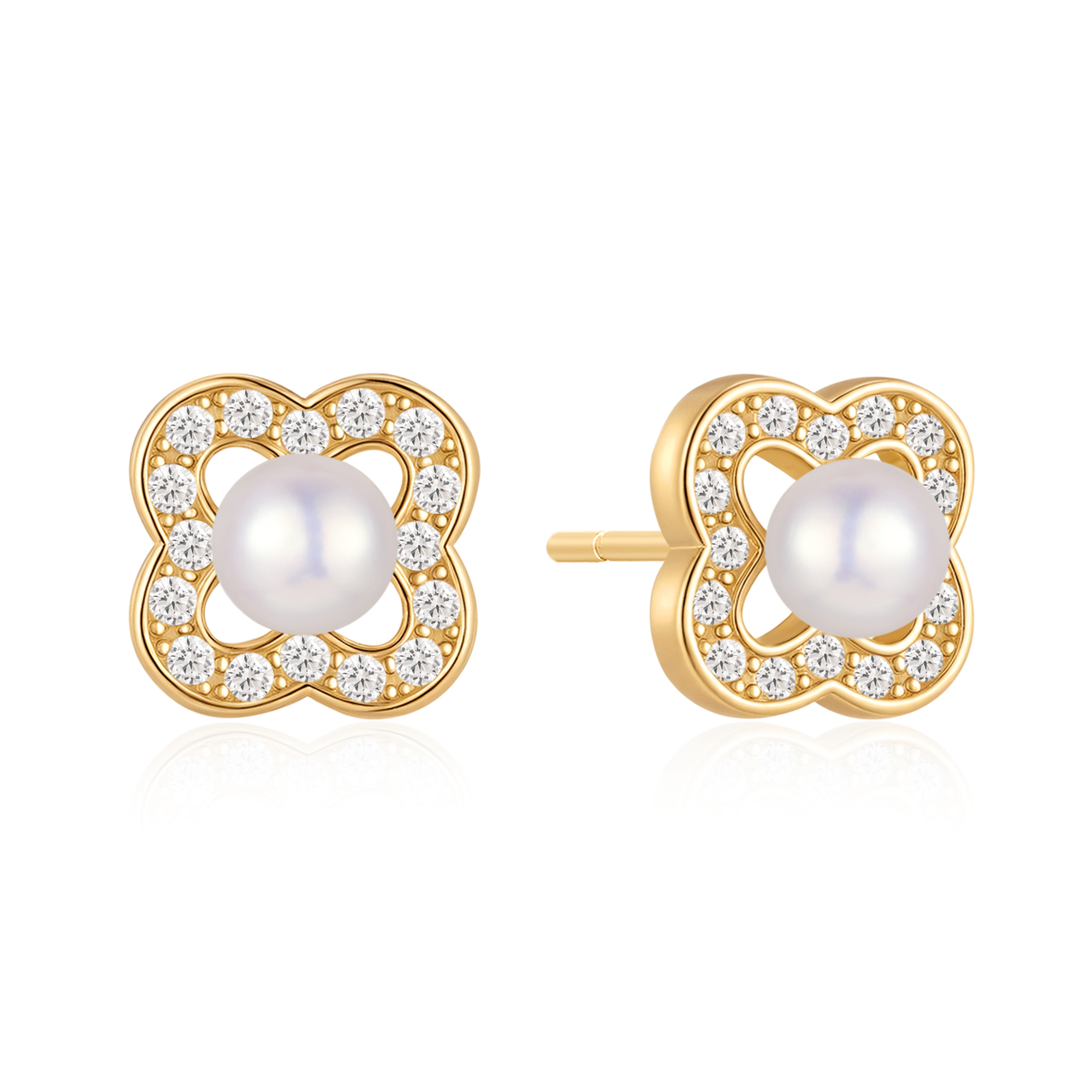 Sølvforgyldt ørestikker blomst med syntetiske cubic zirconia og ferskvandsperle.
