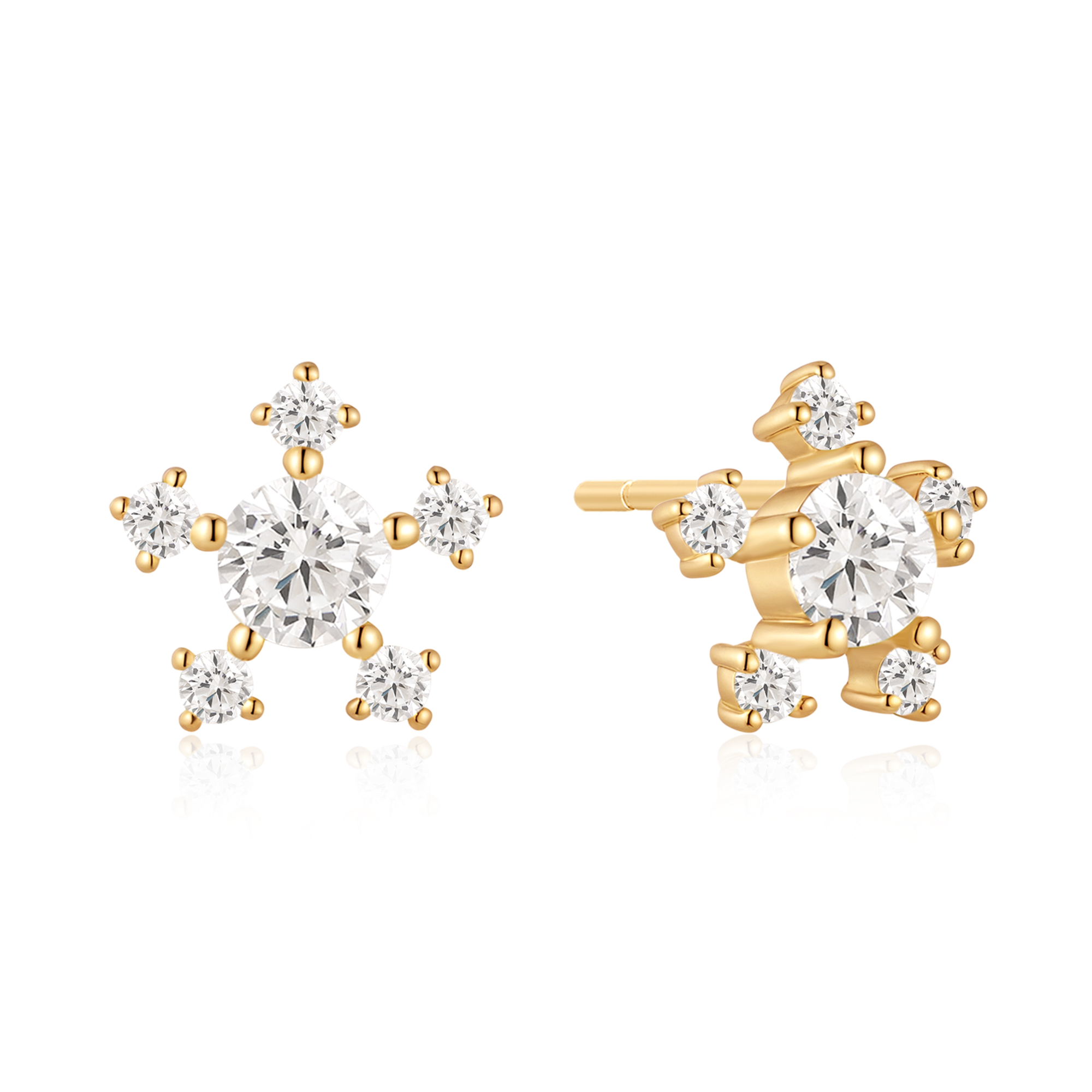 Sølvforgyldt ørestikker snefnug med syntetiske cubic zirconia.