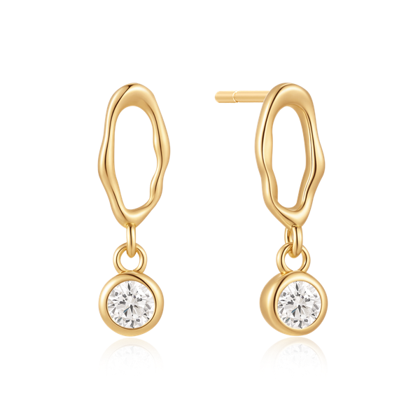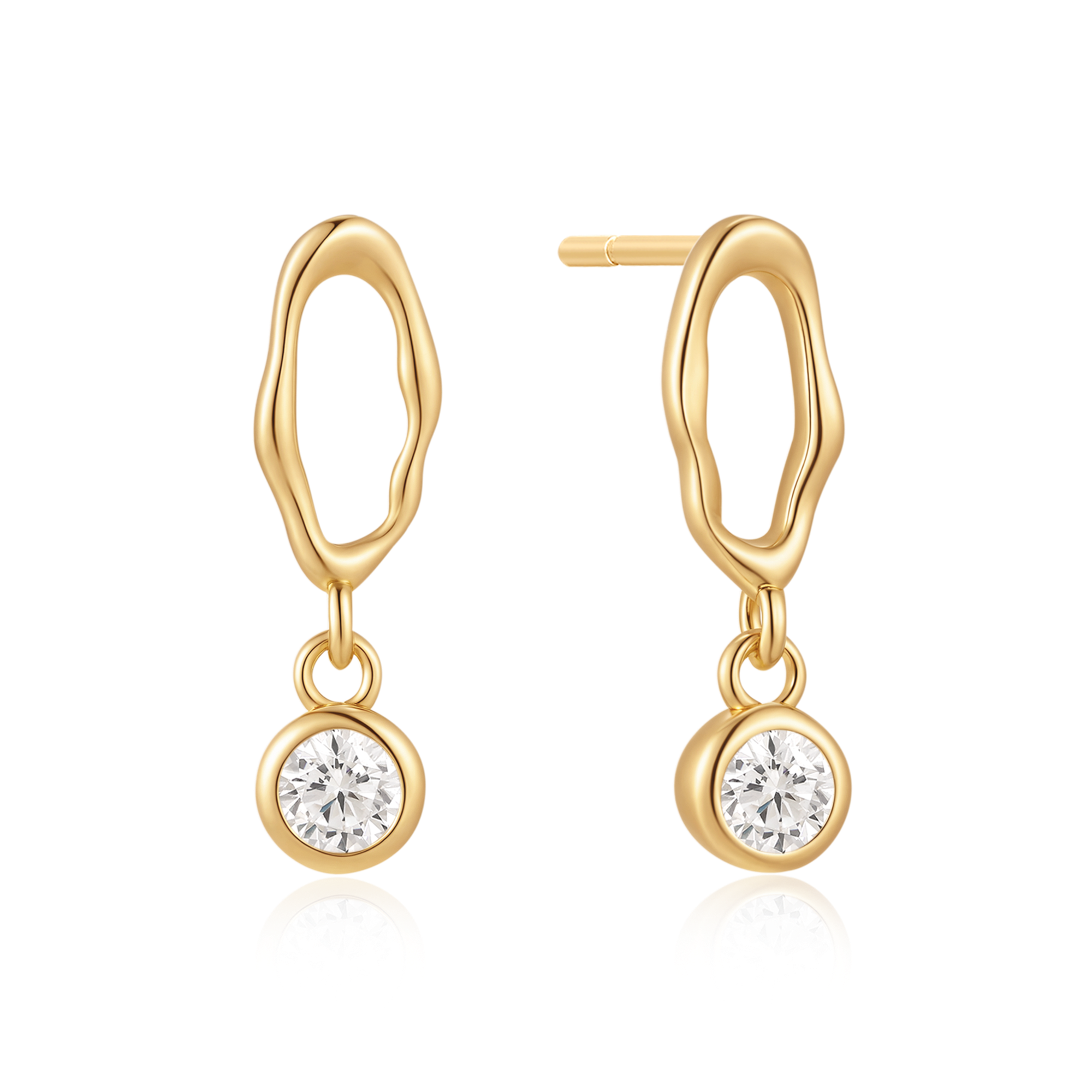 Sølvforgyldt ørestikker oval med syntetiske cubic zirconia som hænger.