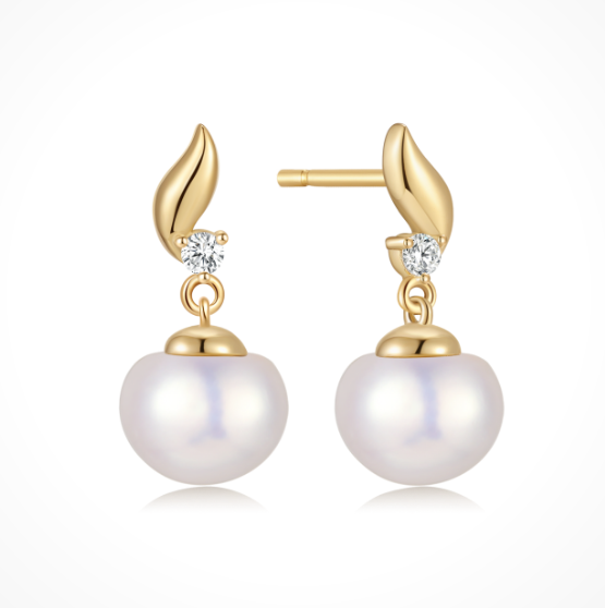 Sølvforgyldt ørestikker snoget med syntetiske cubic zirconia og en ferskvandsperle.