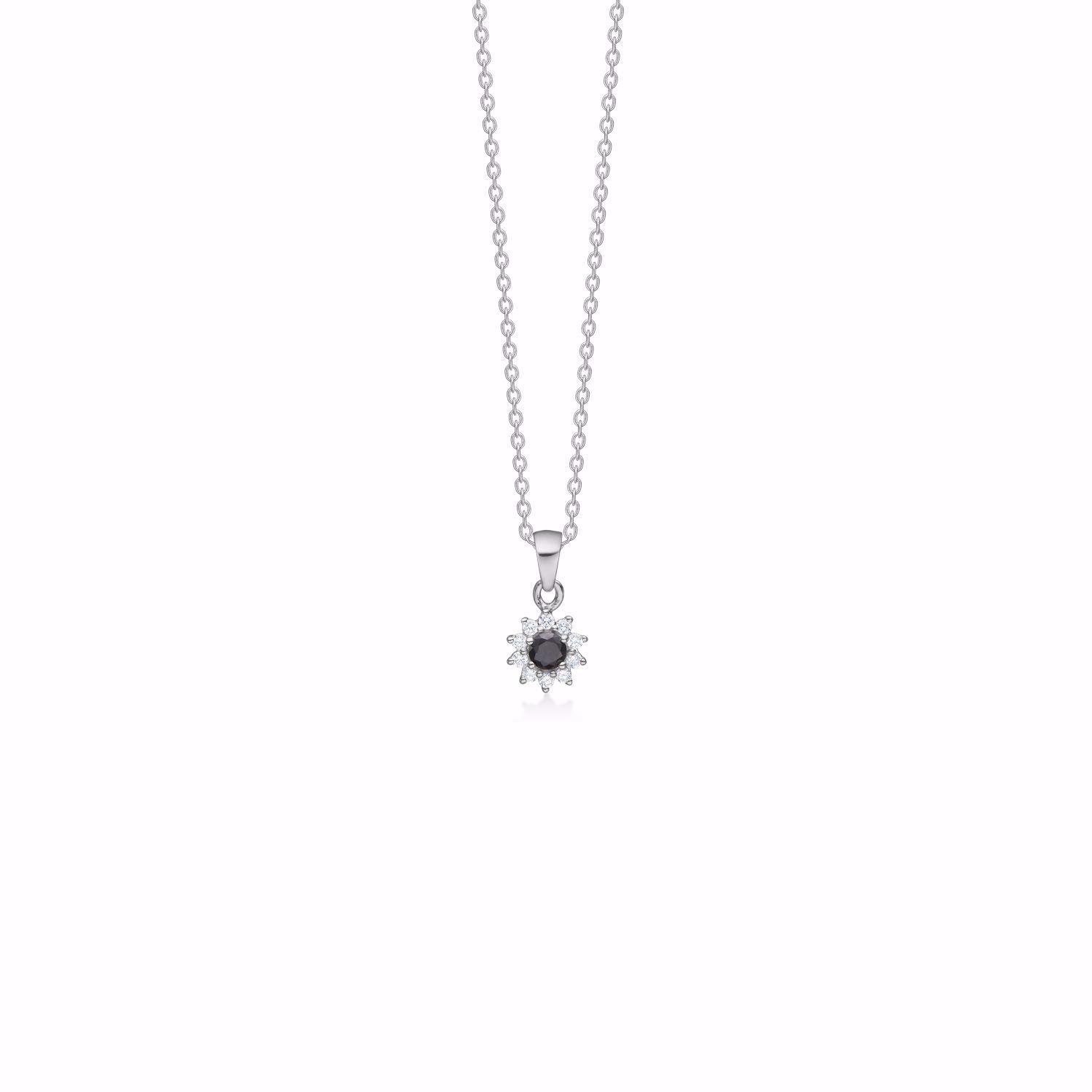Sølvvedhæng roset med sort/hvid cz og kæde