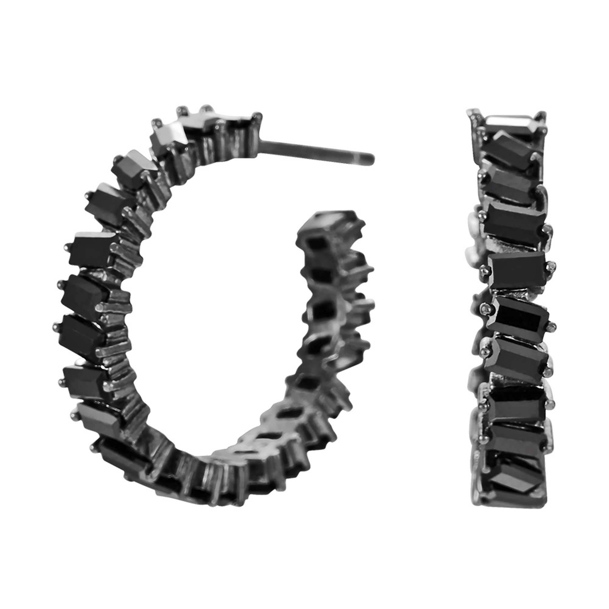 Sort rhd. sølv creol AGGANOR m baguette cz*, fra Joanli Nor