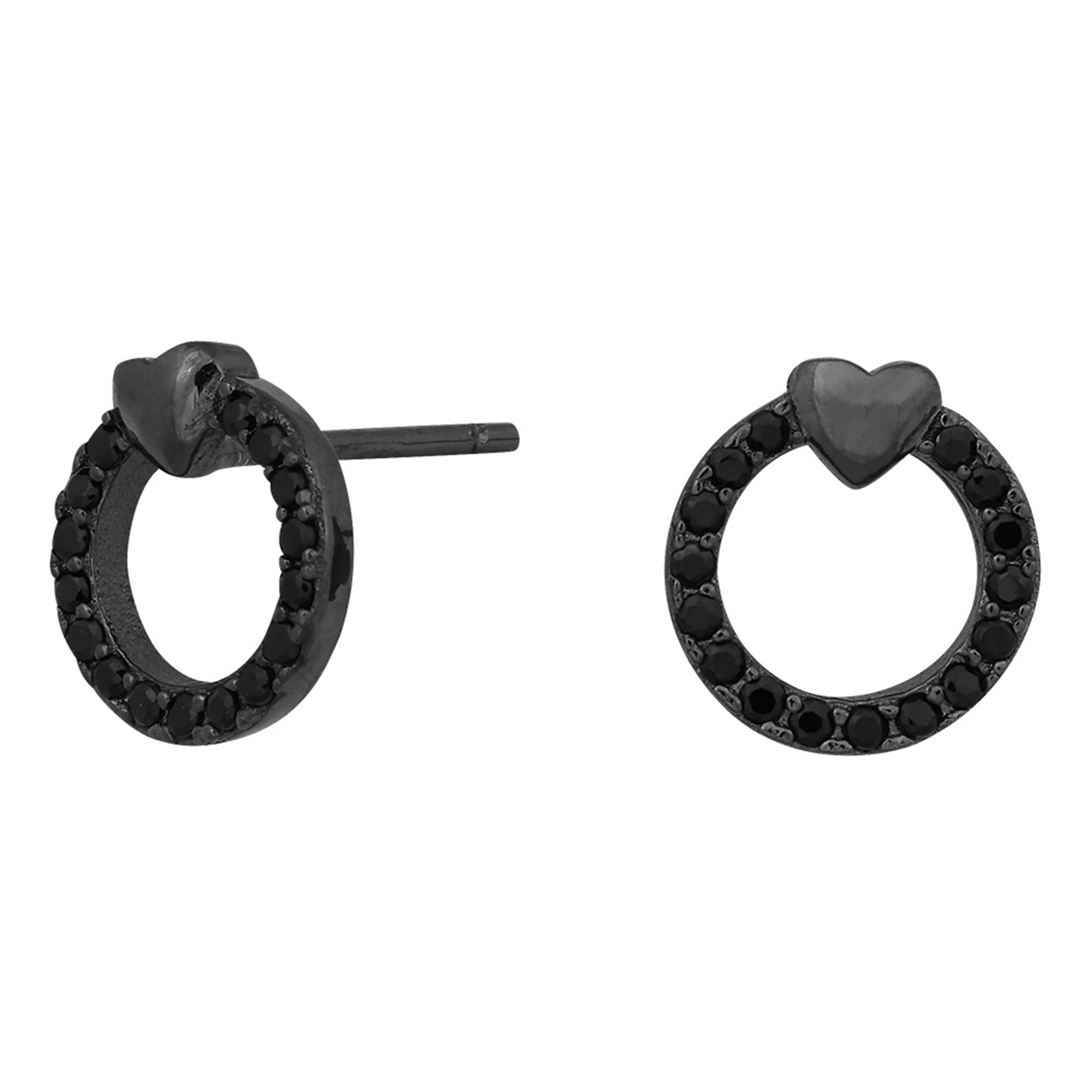 Flatterende, klassik designet smykke, med et lille twist! Med skinnende zirkonia sten, samt det diskrete, lille hjerte, er vores Brina øreringe en smuk version af de populære cirkulære øreringe. De sort rhodineret sølvøreringe har et ubesværet og sødt